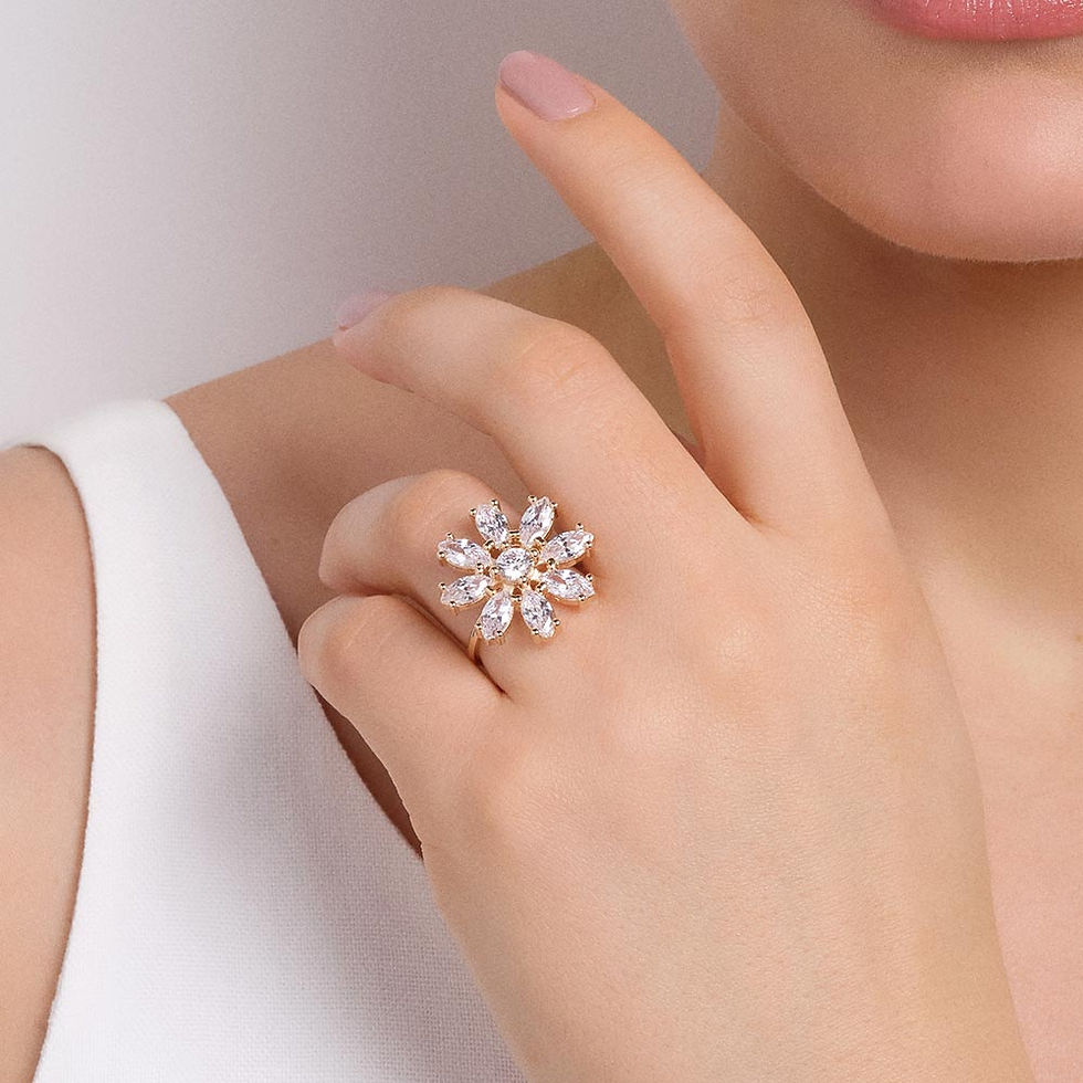 Maxi rommanel anel flor folheado a ouro com zircônias