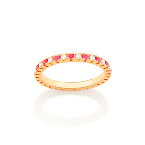 Meia aliança cravejada por 28 zircônias de 1,75 mm (a quantidade de zircônias pode variar dependendo do tamanho).