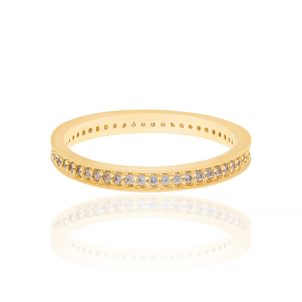 Anel aparador de aliança rommanel folheada a ouro 18k cravejada por 56 zircônias de 1 mm cada, rodeando toda a extensão da joia; uma exclusividade que traz um toque especial de luxo e brilho para quem não se contenta com a simplicidade!