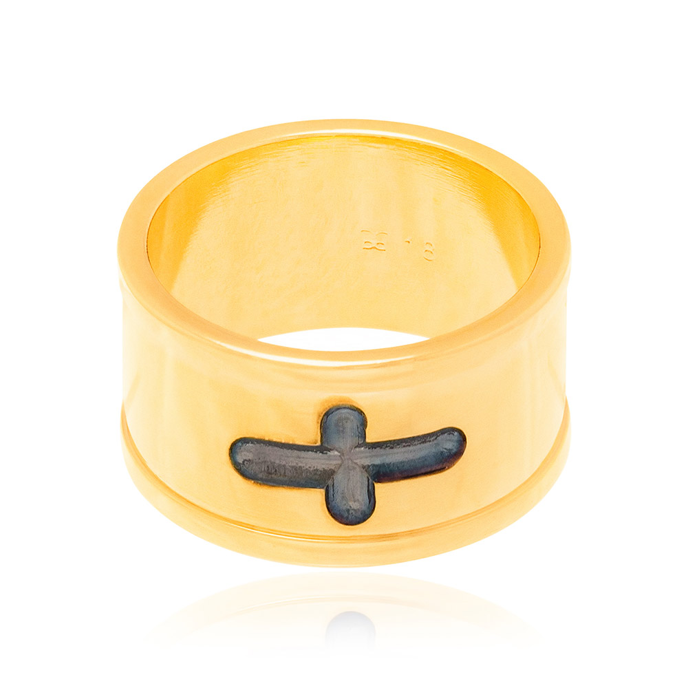 Anel aro liso, composto por cruz com aplicação de rhodium negro "coleção homem -