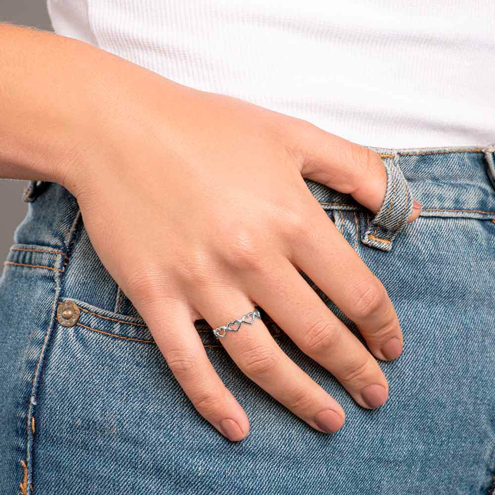 Anel formado por aro no formato de corações.