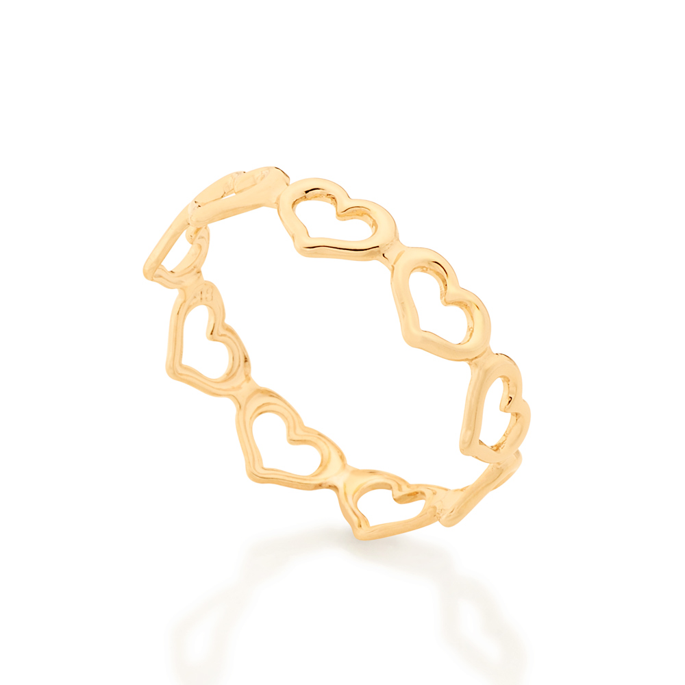 Anel rommanel com aro de coraçoes folheado a ouro