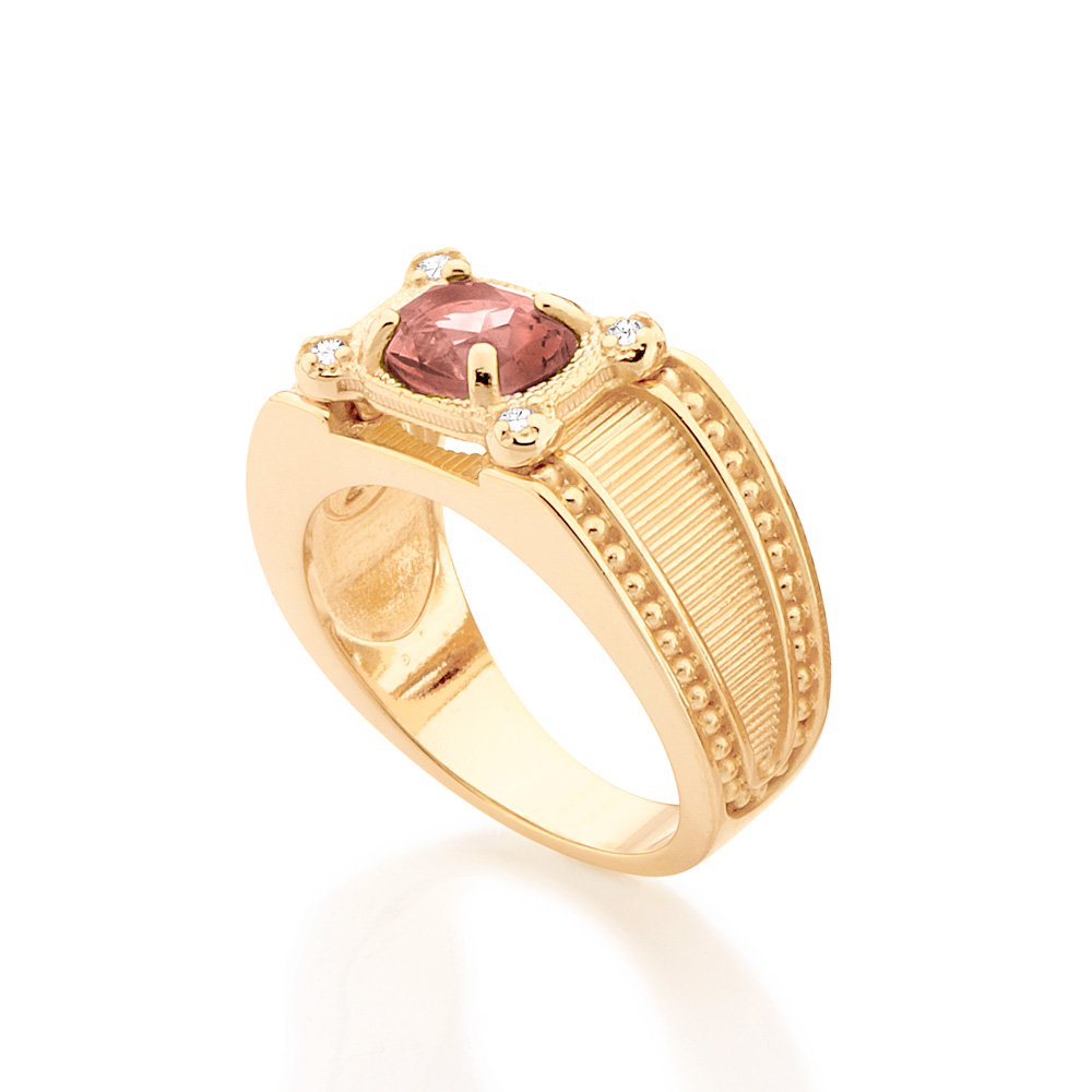 Anel rommanel de formatura masculino com detalhes de frisos e bolinhas