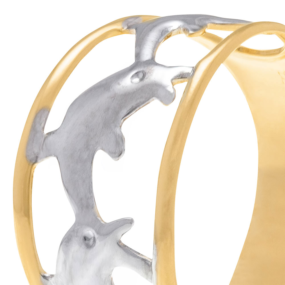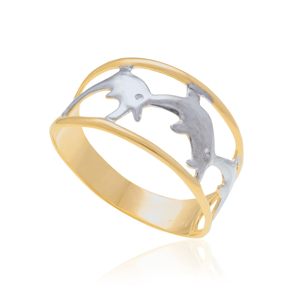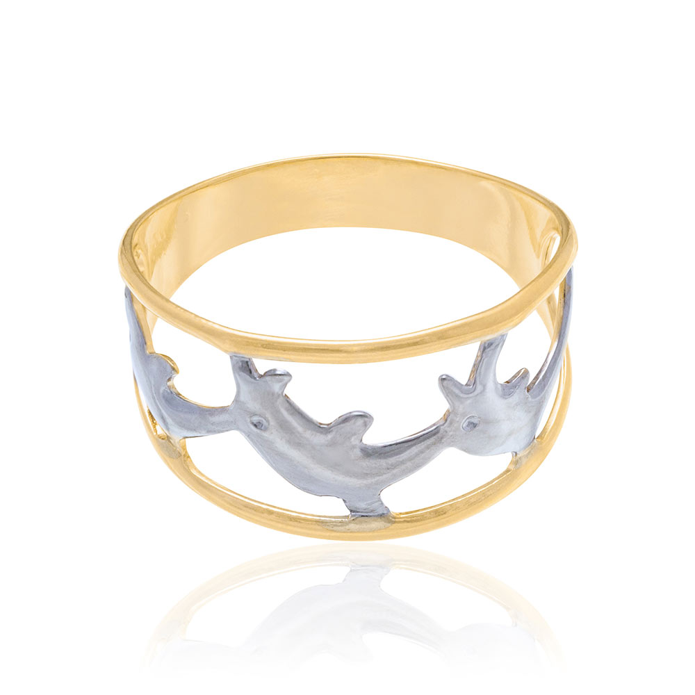 Anel formado por golfinhos em rhodium e bordas lisas.