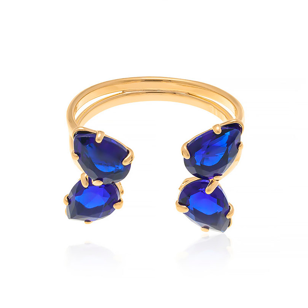 Anel com aro duplo, composto por 4 cristais gota de 5x7mm sendo um em cada ponta.