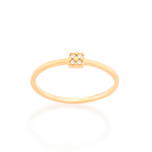 Anel Anel Skinny ring rommanel com detalhe quadrado na parte superior cravejado por 4 zircônias de 1,25 mm.