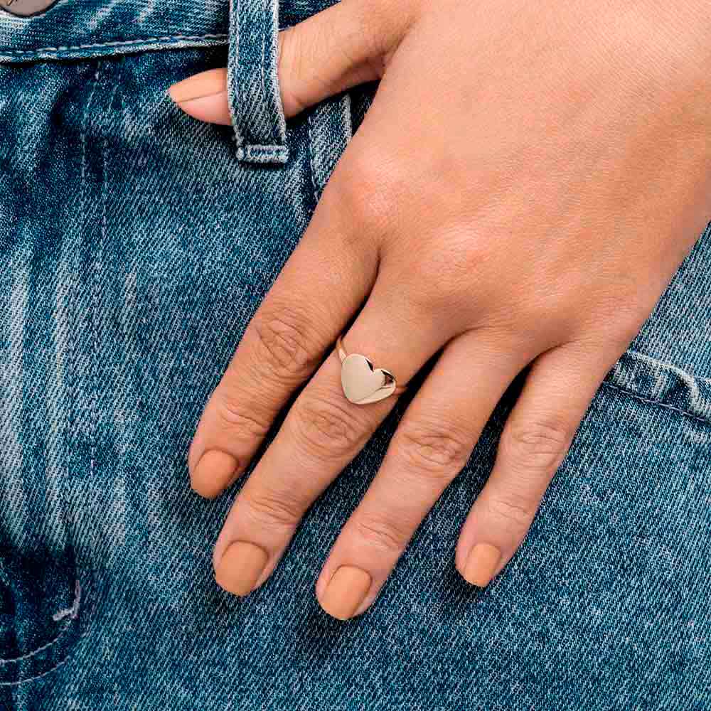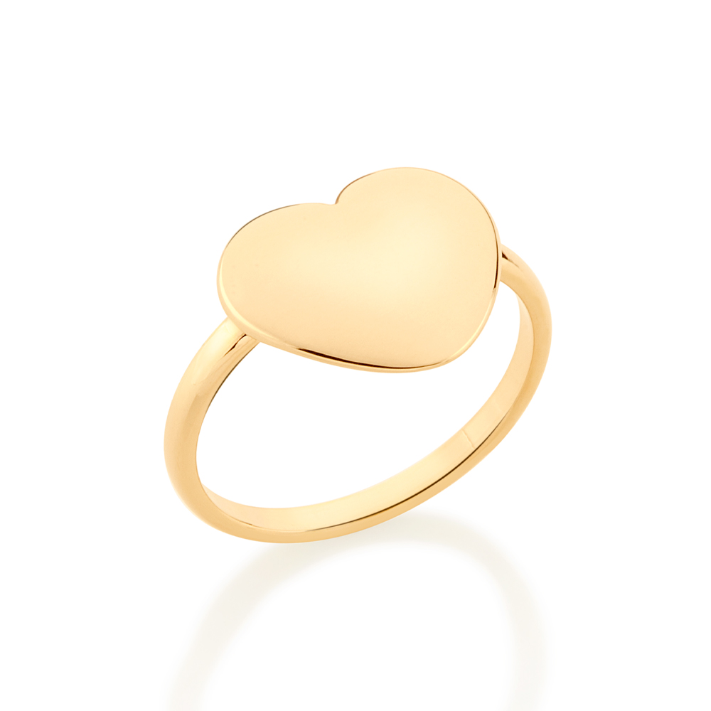 Anel formado por coração liso de 12x14 mm.(joia licenciada cápsula ss)