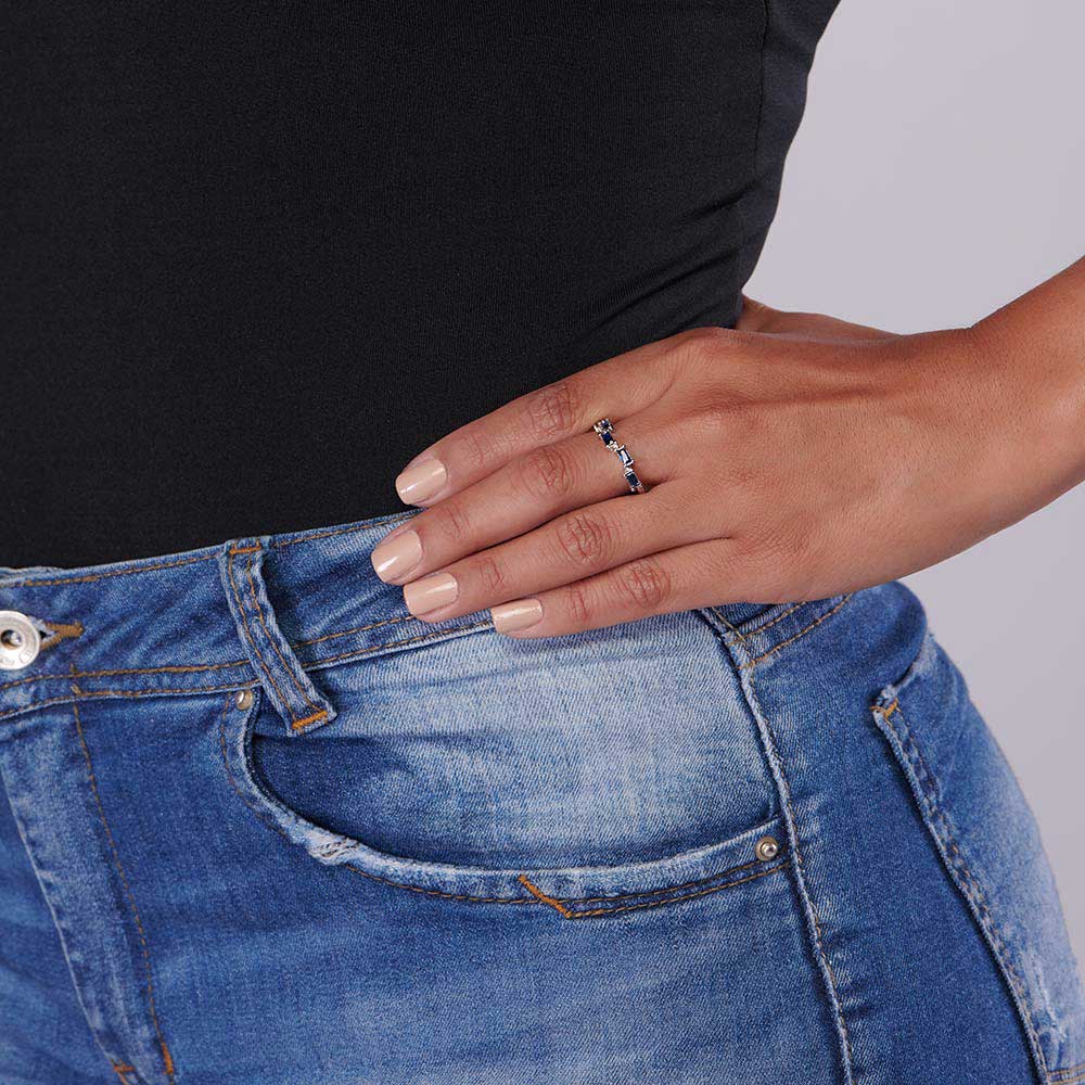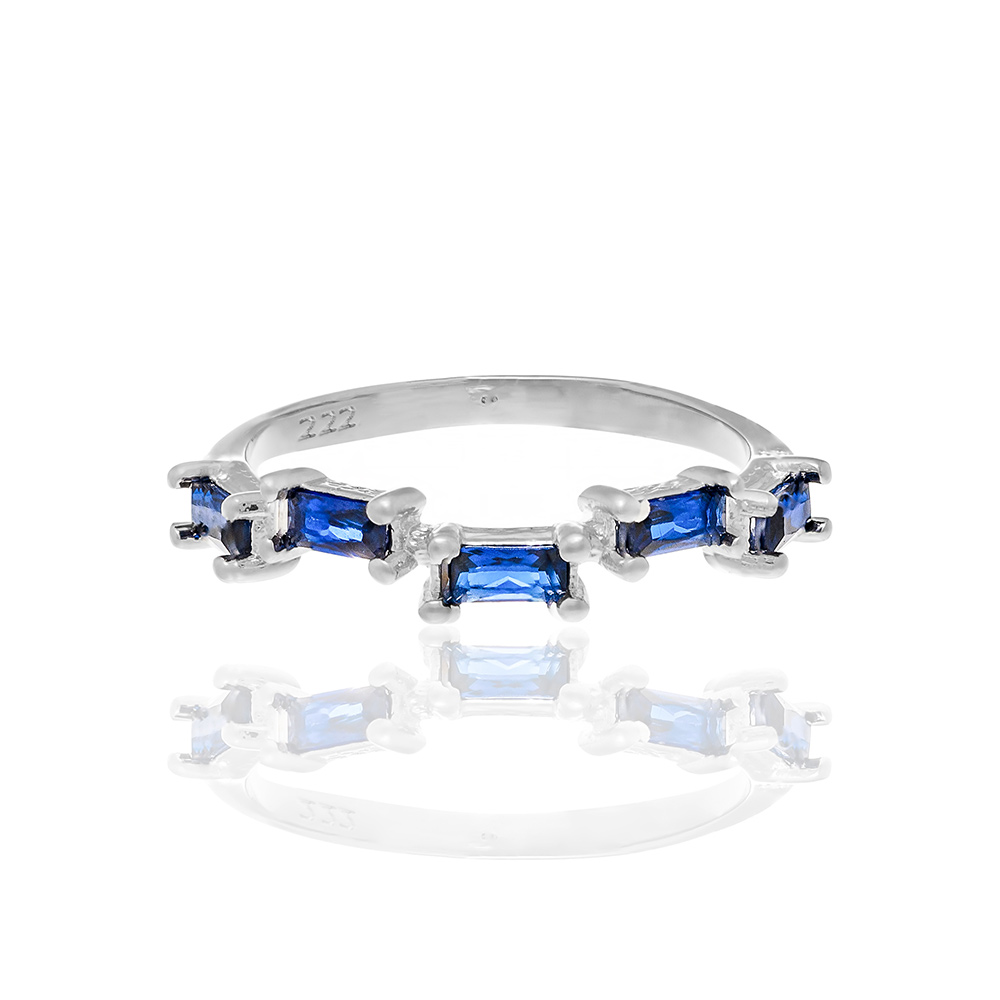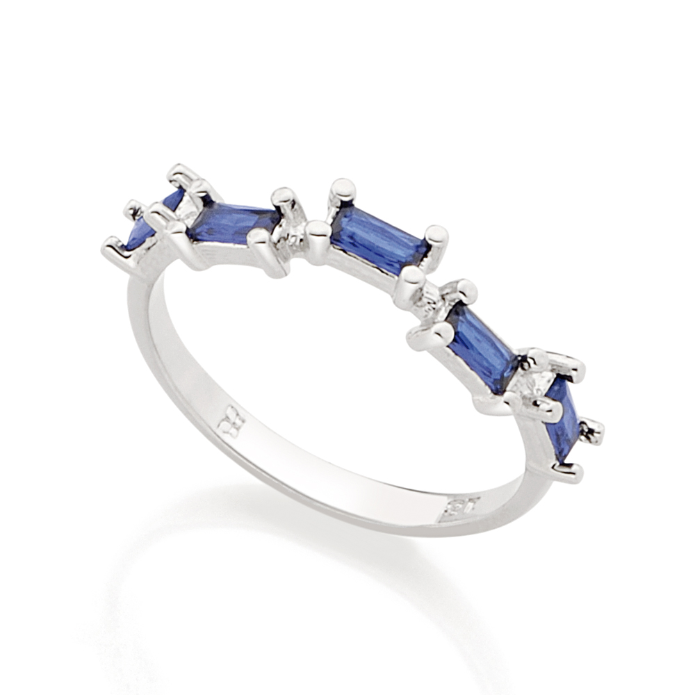 Anel formado por parte superior trabalhada, composta por 5 zircônias retangulares de 2x4 mm.formatura feminino