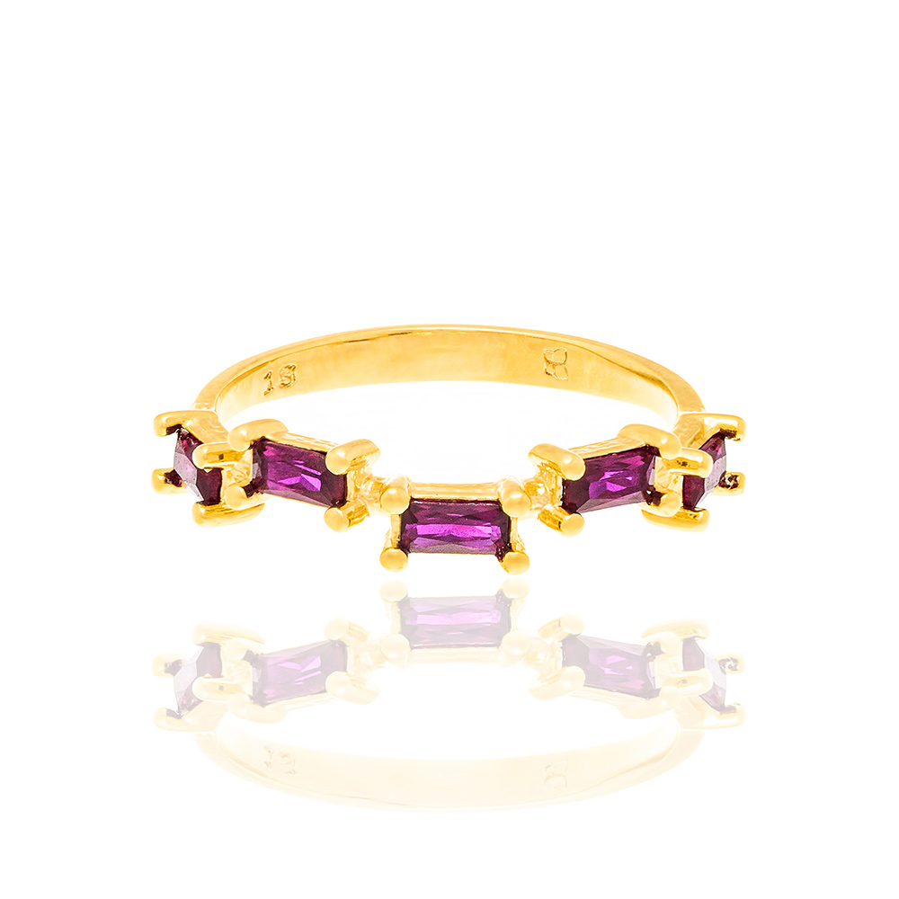 Anel formado por parte superior trabalhada, composta por 5 zircônias retangulare