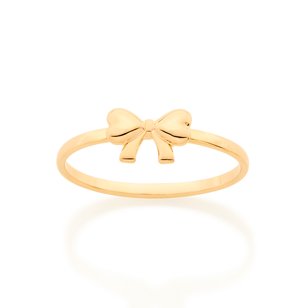 Anel rommanel banhado a ouro 18k, anel aro fino com um laço na parte superior.