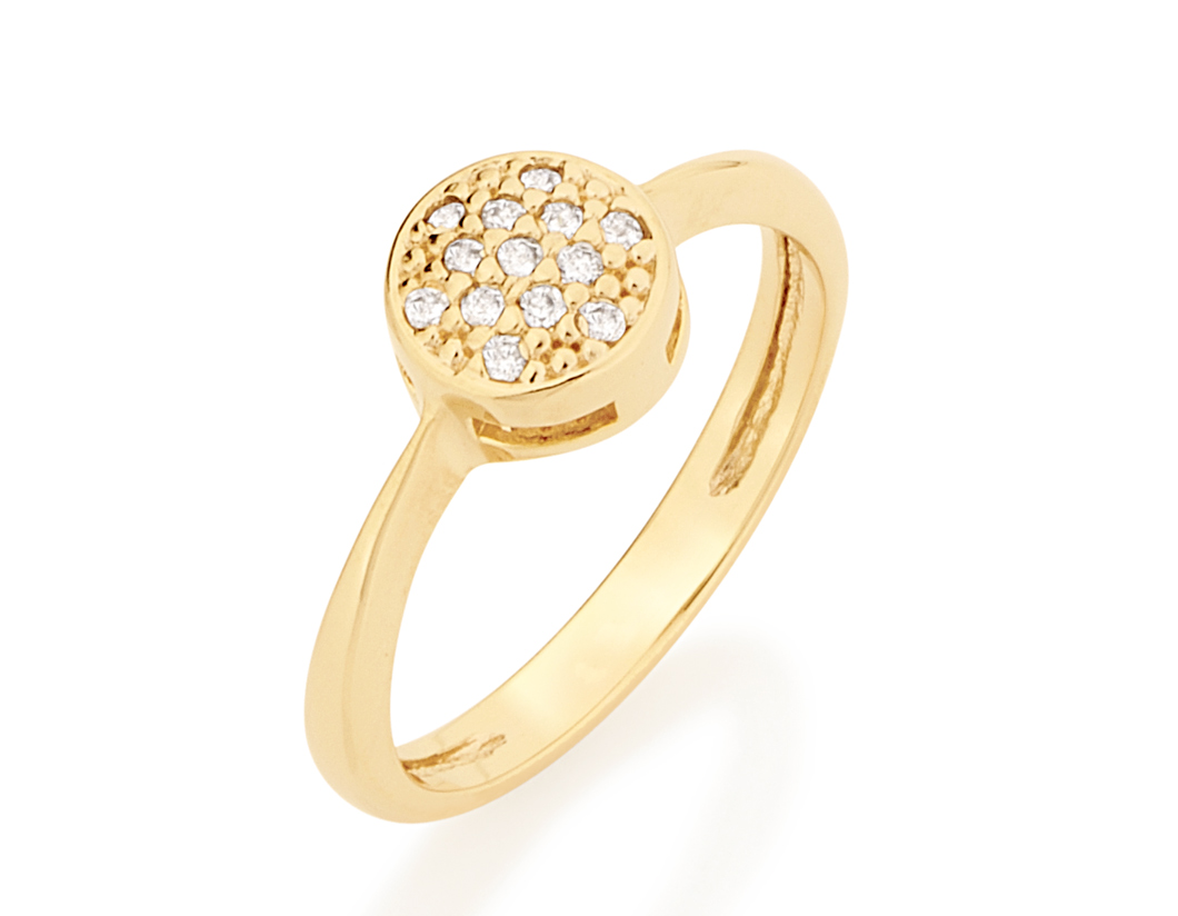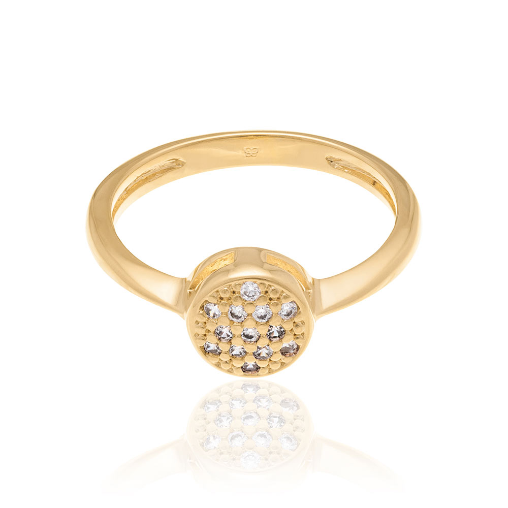 Anel rommanel banhado a ouro redondo com zircônias 511384
