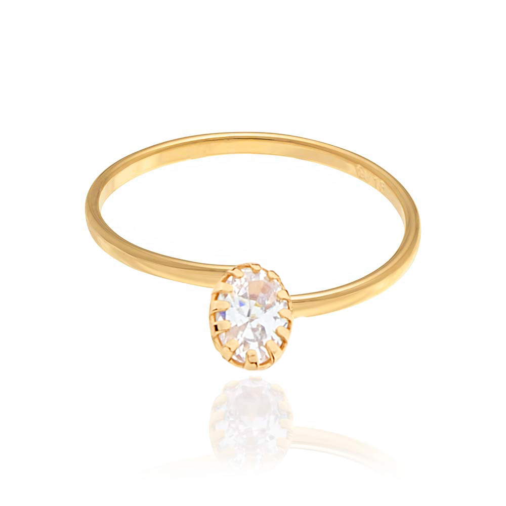 Anel rommanel banhado a ouro skinny solitário zircônia oval 512177