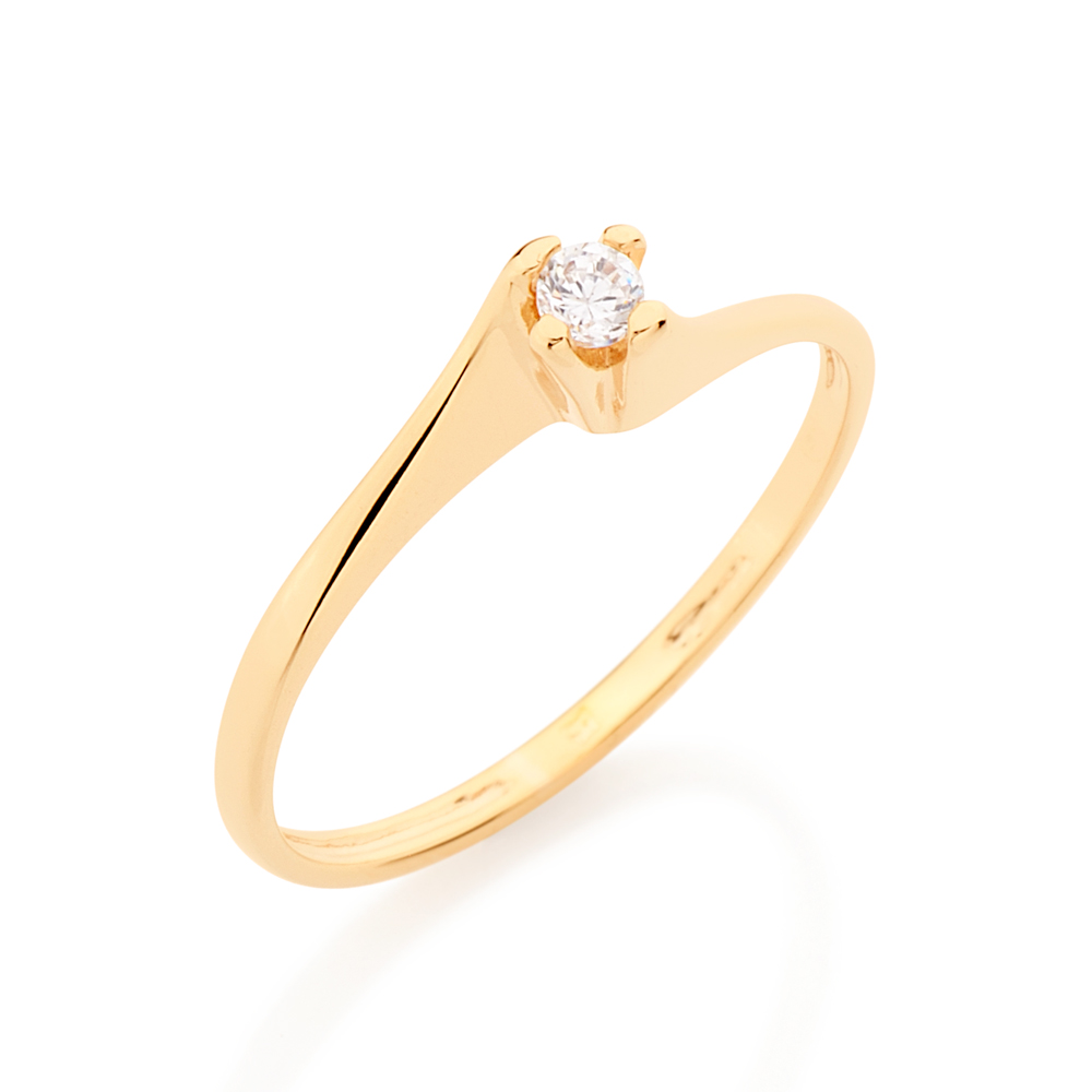 Anel rommanel Folheado a ouro 18k solitário com aro levemente torcido e uma zircônia. Lindo e delicado! Nas opções banhado a ouro e banhado a rhodium (ouro branco).