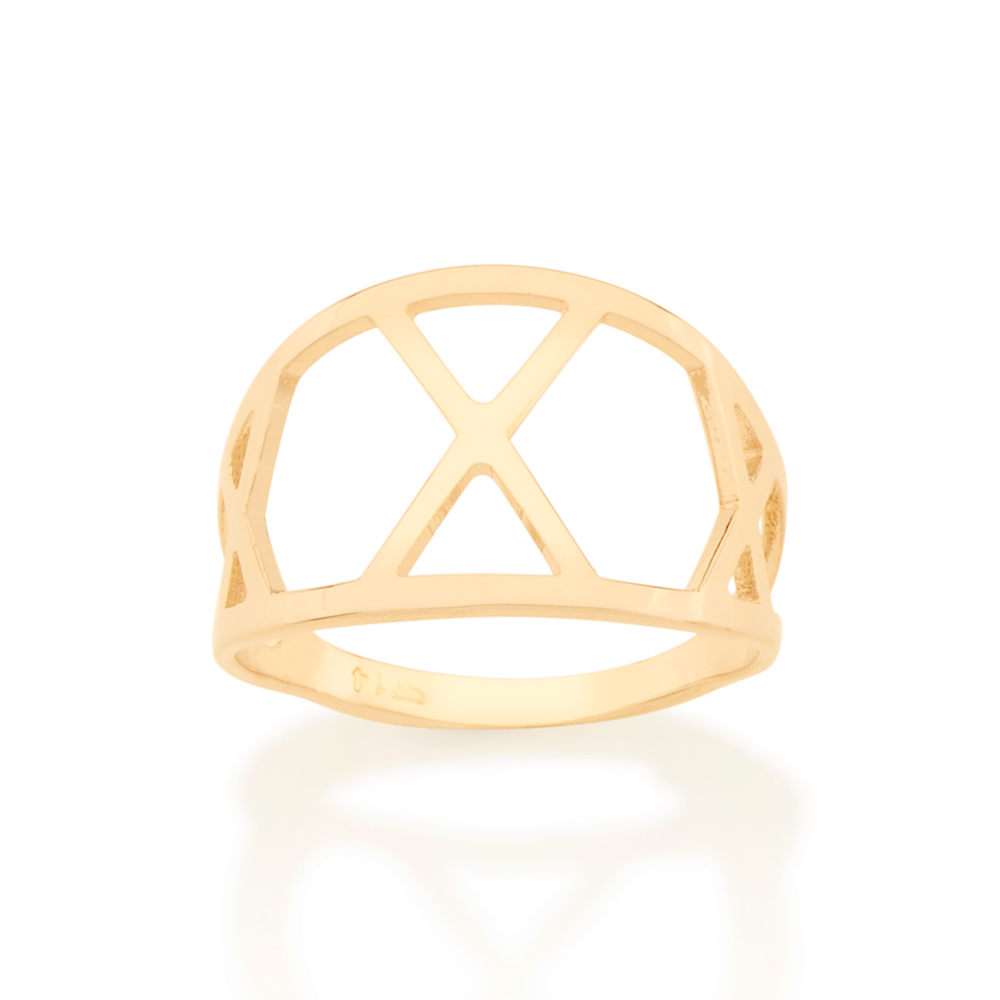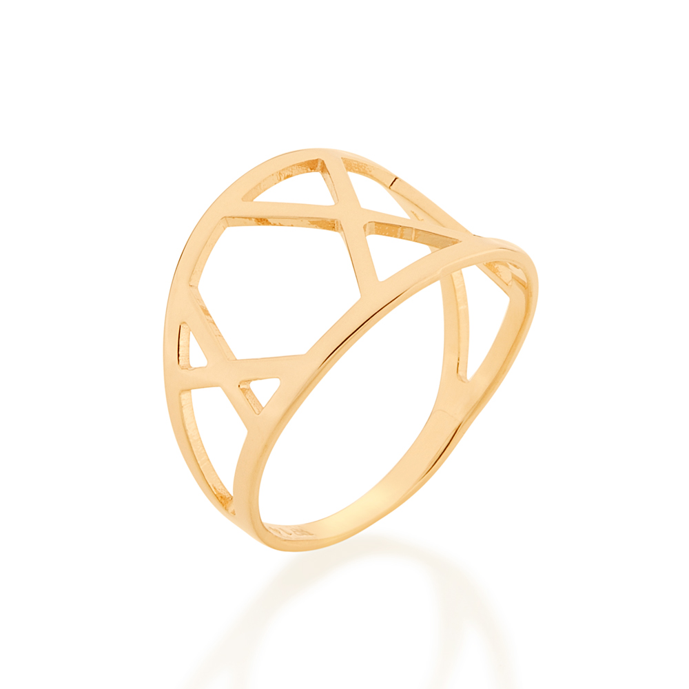 Anel rommanel folheado a ouro 18k, anel com detalhes geométricos vazados.