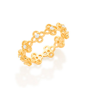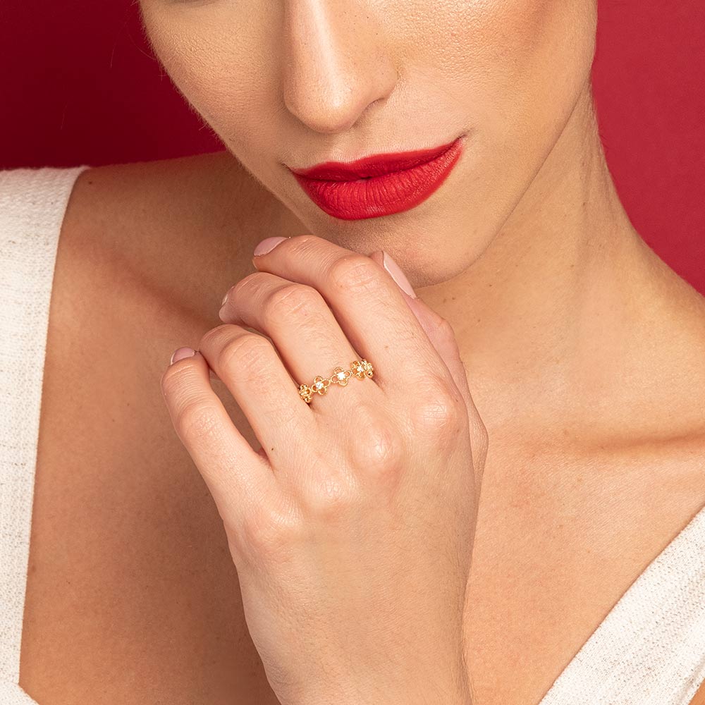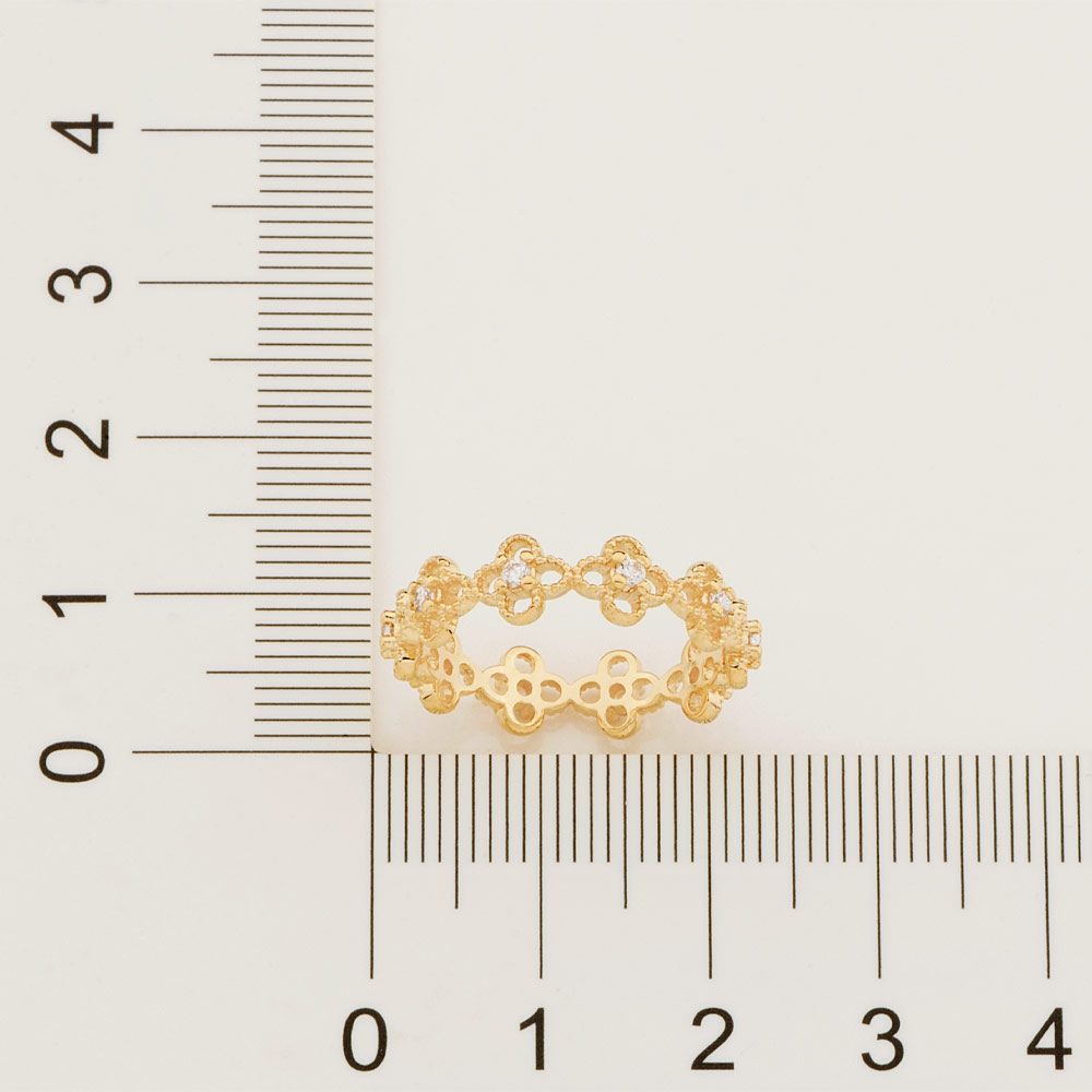 Anel rommanel Banhado a ouro 18k, anel com o aro formado por mini flores vazadas e cravejadas por zircônias de 2 mm ao centro. Jóia licenciada coleção ana hickmann