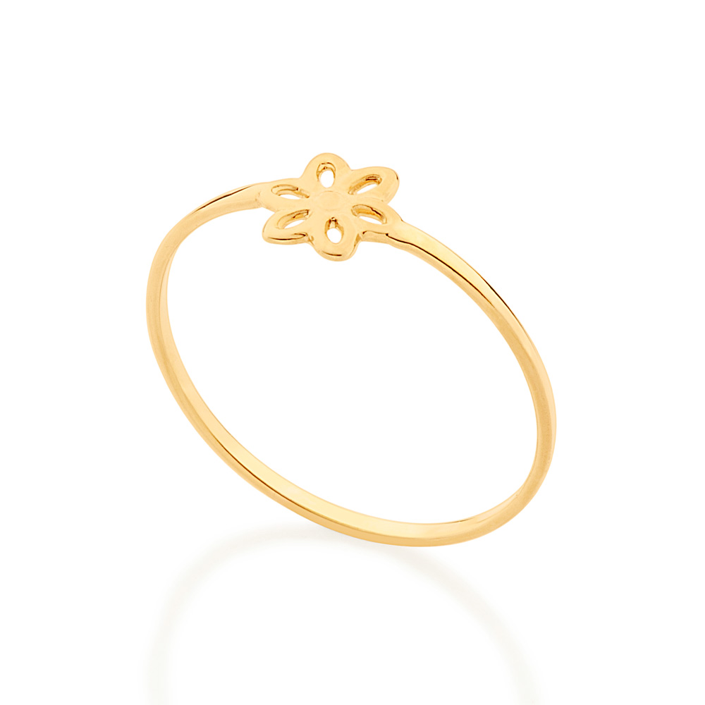Anel rommanel 512881 Banhado a ouro 18k, de aro fino com mini flor vazada.