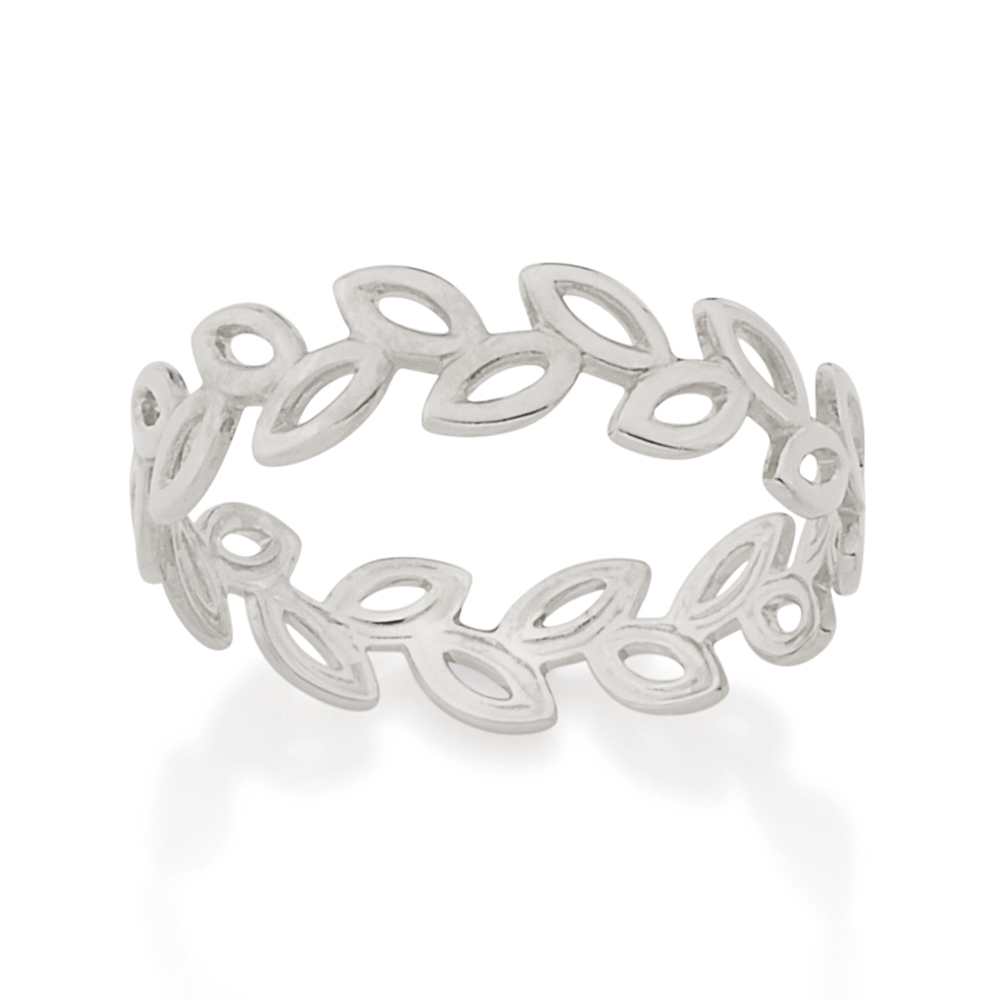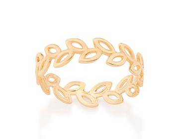 Anel rommanel banhado a ouro 18k. anel formado por aro de folhas folhinhas vazadas e estilizadas.