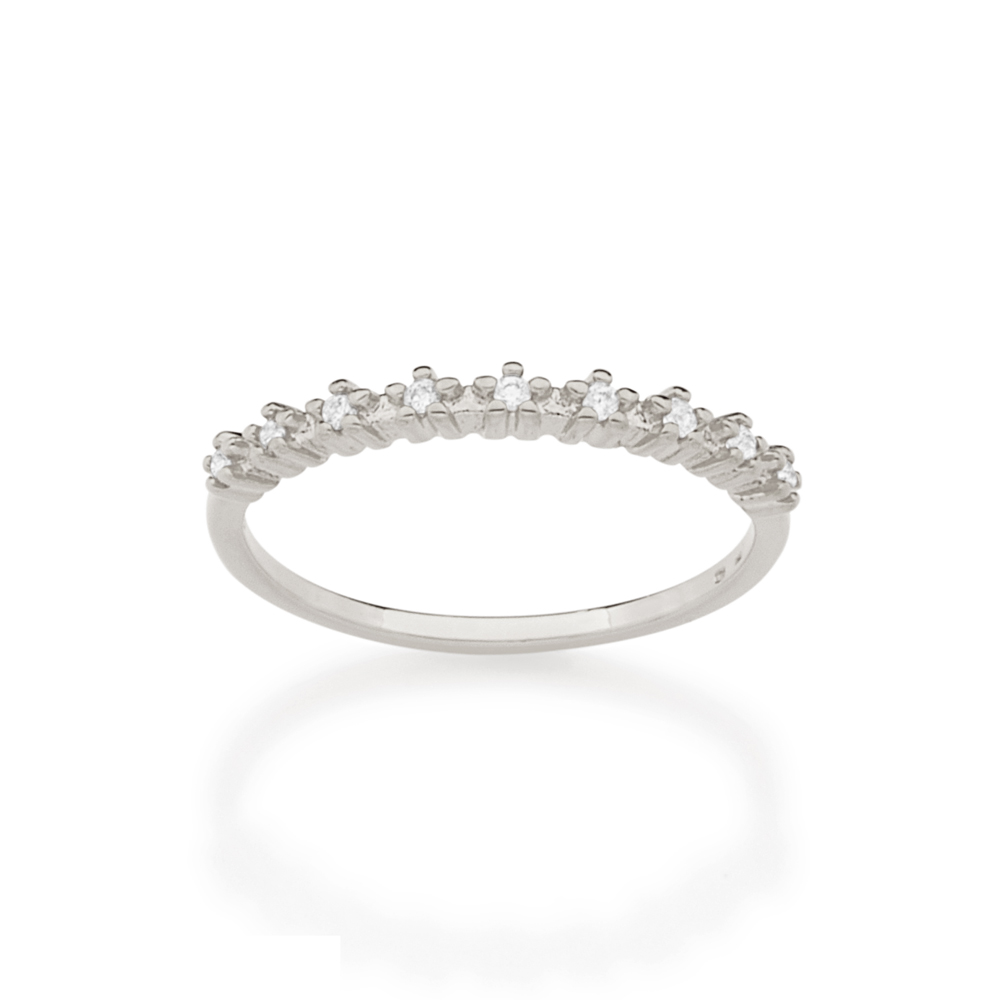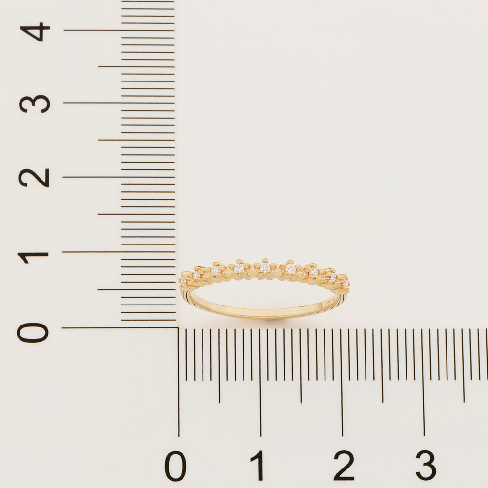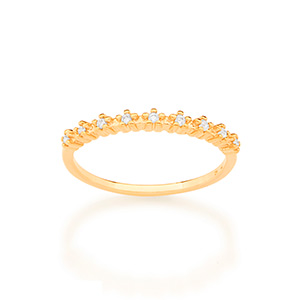 Anel rommanel Banhado a ouro 18k, de aro fino (Anel Skinny ring rommanel) com pequenas flores cravejadas com zircônias (pedras) brancas. Cada zircônia possui 1,25 mm.