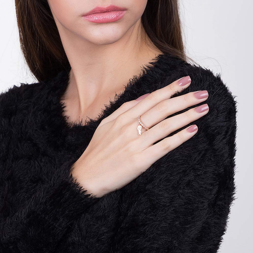 Anel rommanel folheado a ouro 18k contendo 10 zircônias de 1,50 mm cravejadas na superfície, com pendant de menino super charmoso, fornecendo detalhe totalmente especial à joia. Procurando um anel diferente e que traga um sentimento especial? Esta é a peça para você!.