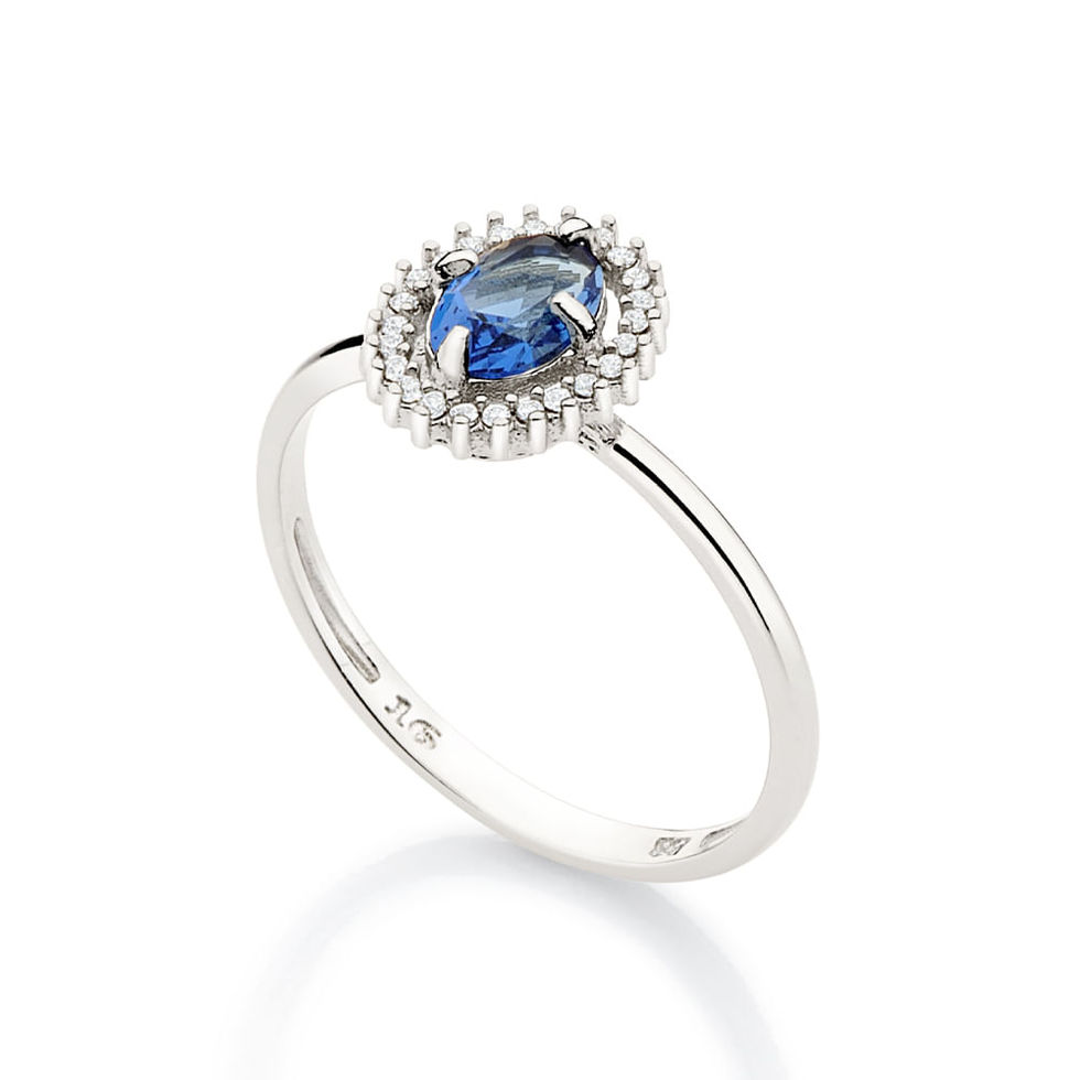 Anel solitário oval cravejado por 24 zircônias de 0,80 mm e 1 zircônia oval de 4x6 mm ao centro.