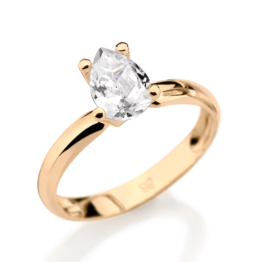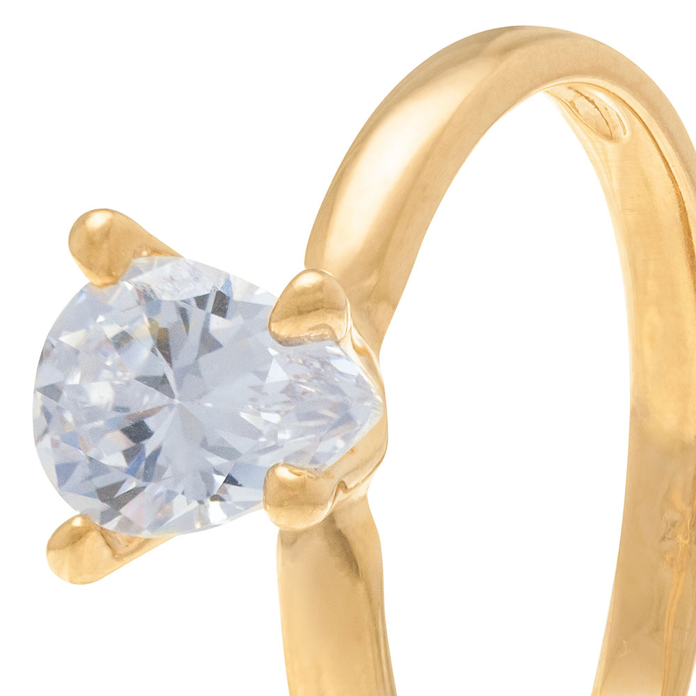 Anel rommanel solitário banhado a ouro gota de zircônia 511174