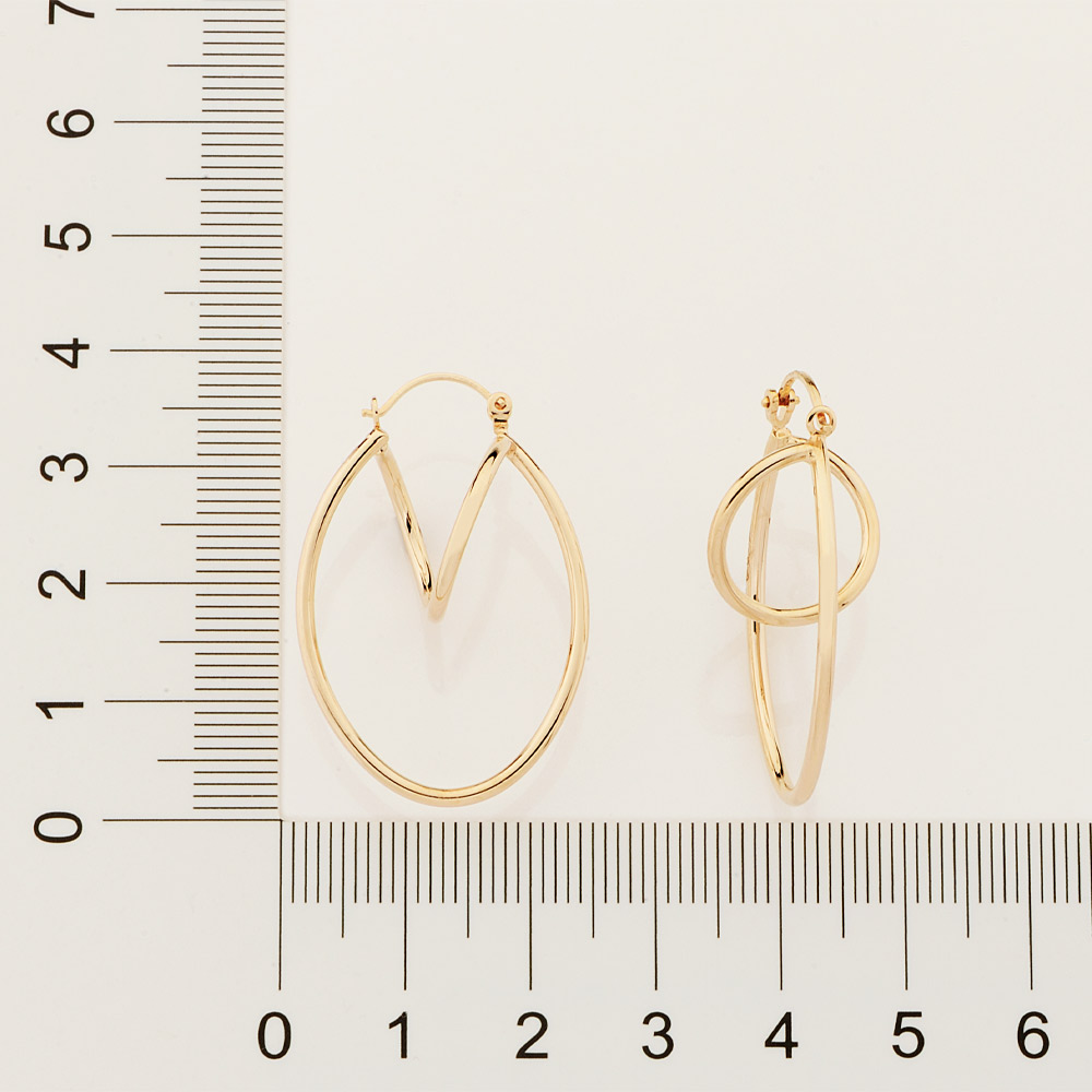 Brinco argola dupla oval formado por detalhe curvado em cima.