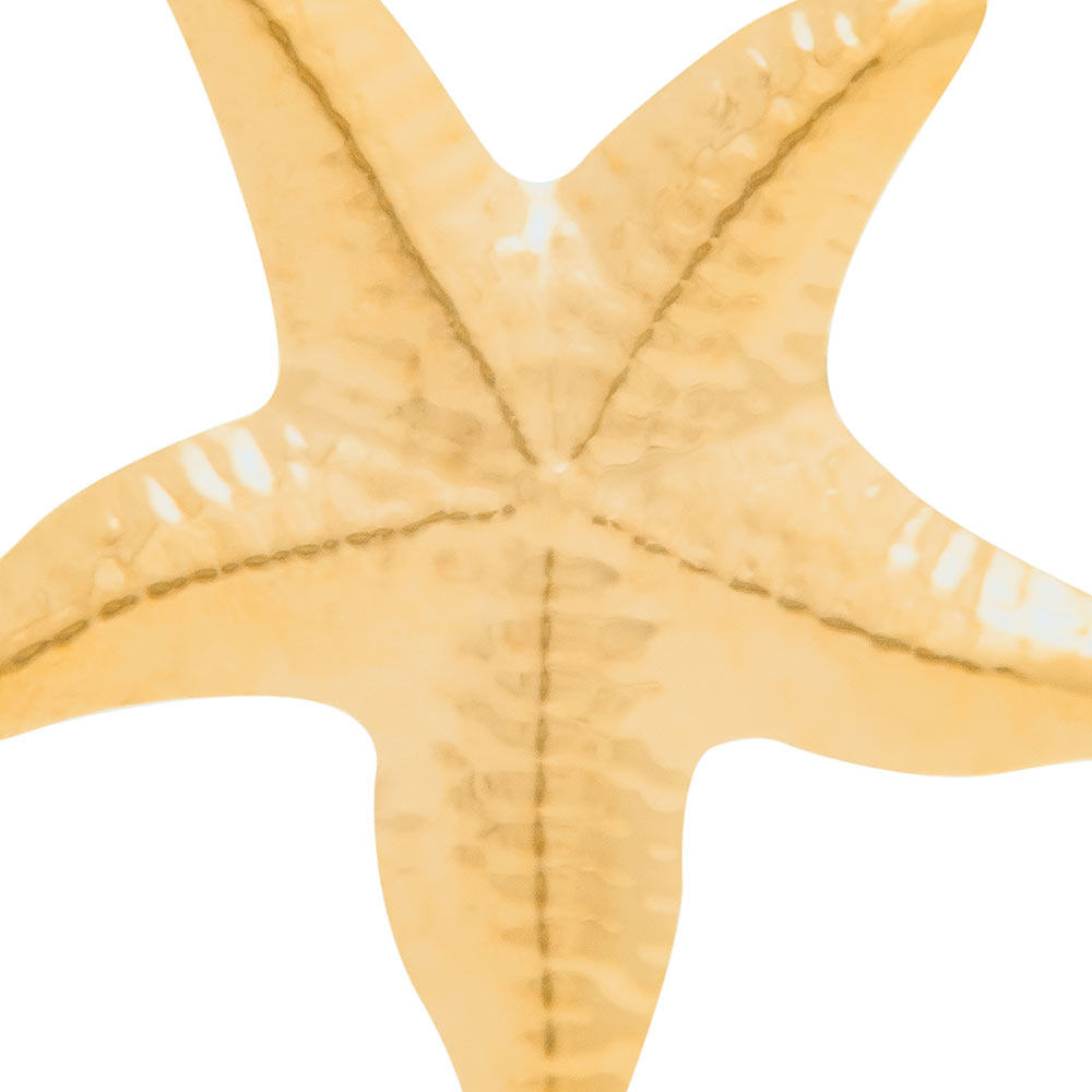 Brinco rommanel folhado a ouro 18k em formato de estrela do mar pequena, com detalhes em alto relevo.