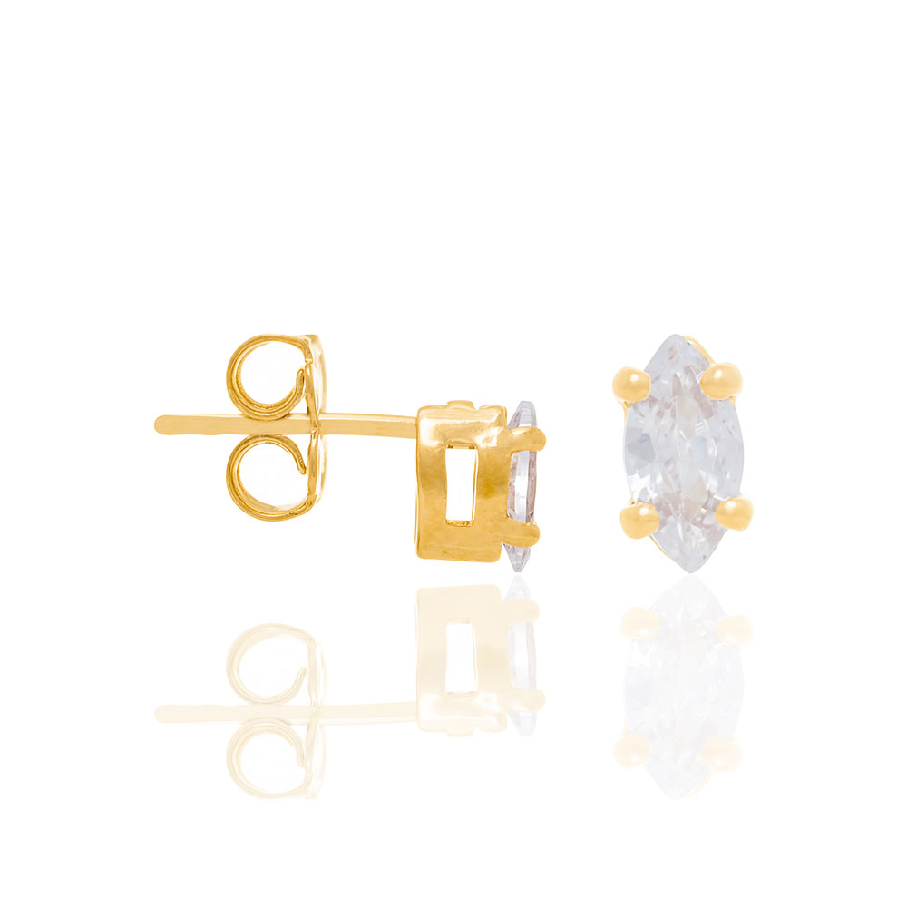 Brinco rommanel banhado ouro solitário zircônia navete 526158