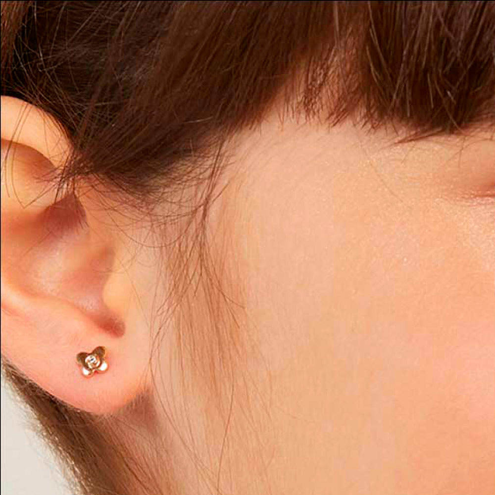 Brinco infantil no formato borboleta, composto por 2 zircônias de 1,25 mm.