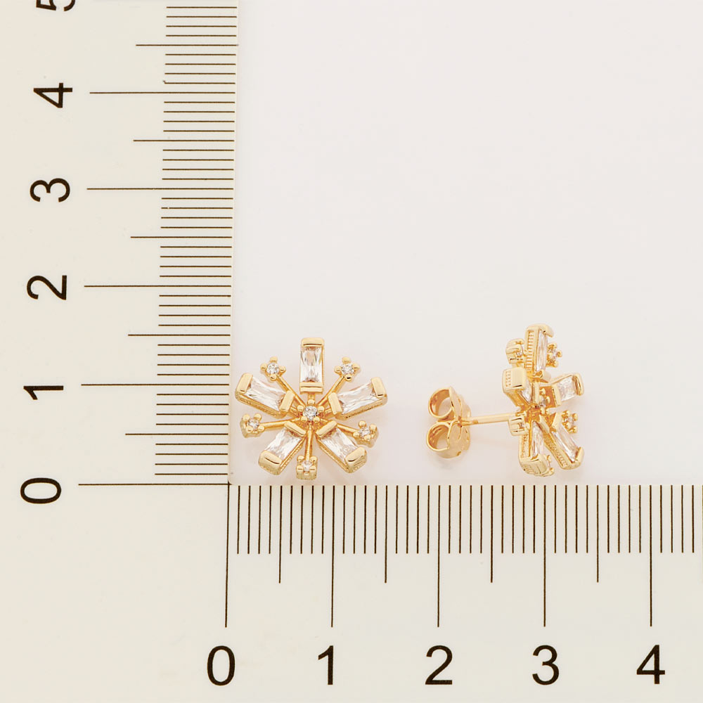 Brinco botão com palitos cravejados por 10 zircônias baguetes de 4x2 mm, 10 zircônias de 1,25 mm nas pontas e 2 zircônias de 1,50 mm ao centro. med 1,5 cm (joia licenciada coleção giovanna antonelli)
