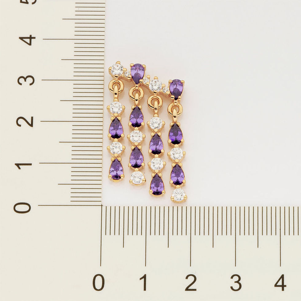 Brinco formato cascata cravejado por 20 zircônias gota de 3x5 mm, 20 zircônias de 3,0 mm e 6 zircônias de 1,5 mm (par).