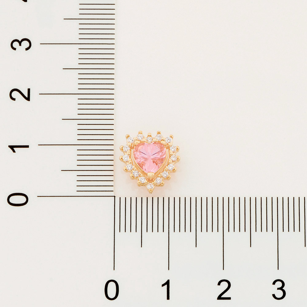 Brinco no formato de coração, cravejado por 32 zircônias de 1,25 mm, com 2 cristais coração de 6x6 mm ao centro (par).