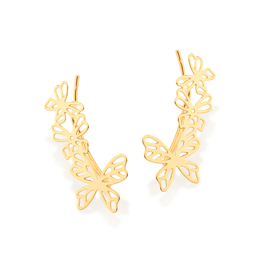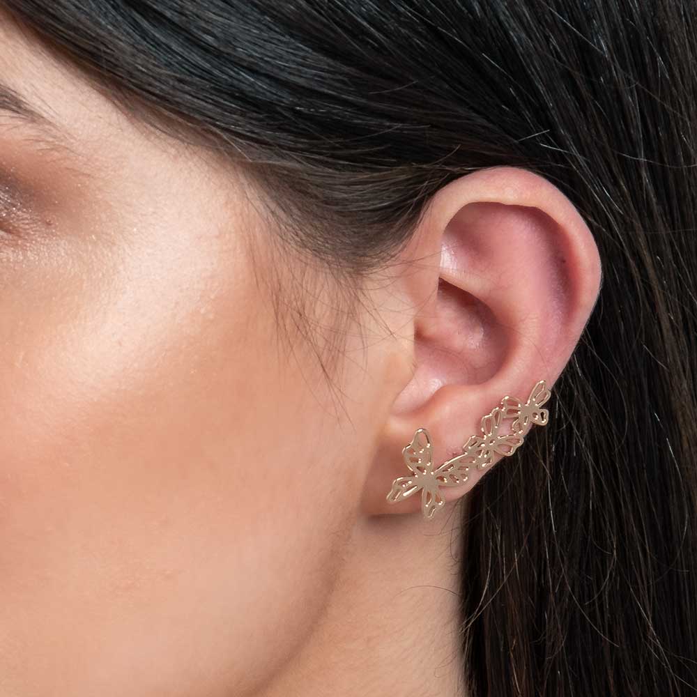 Brinco ear cuff formado por 6 borboletas vazadas (par).