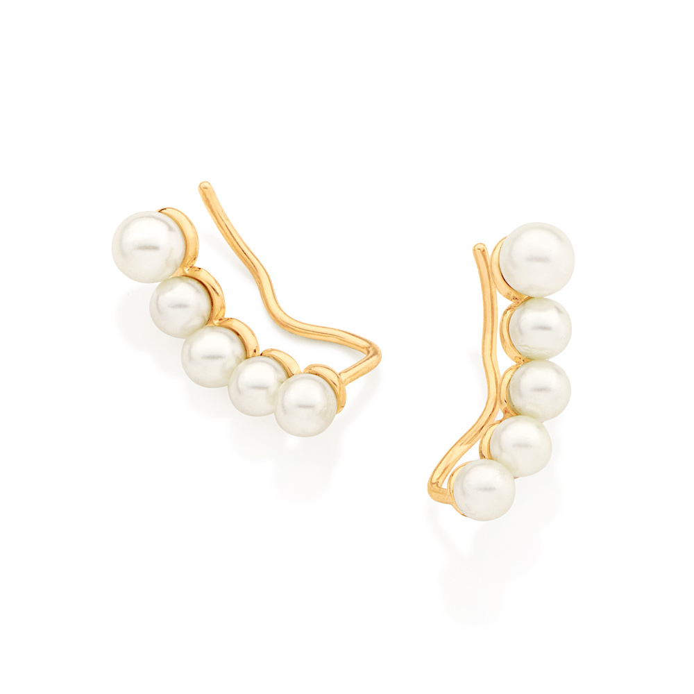 Brinco ear cuff composto por 8 pérolas sintéticas de 4 mm, e 2 pérolas sintéticas de 5 mm.
