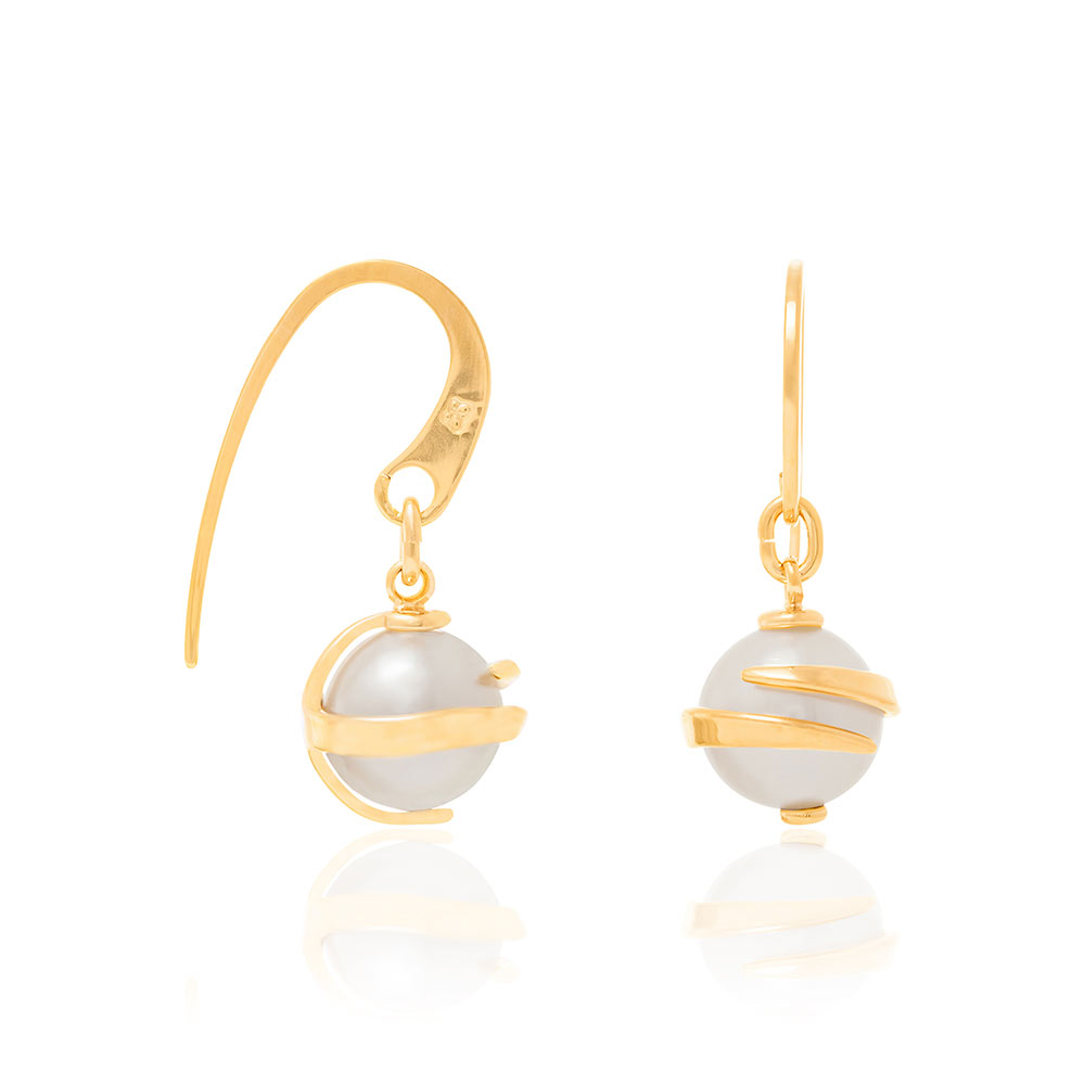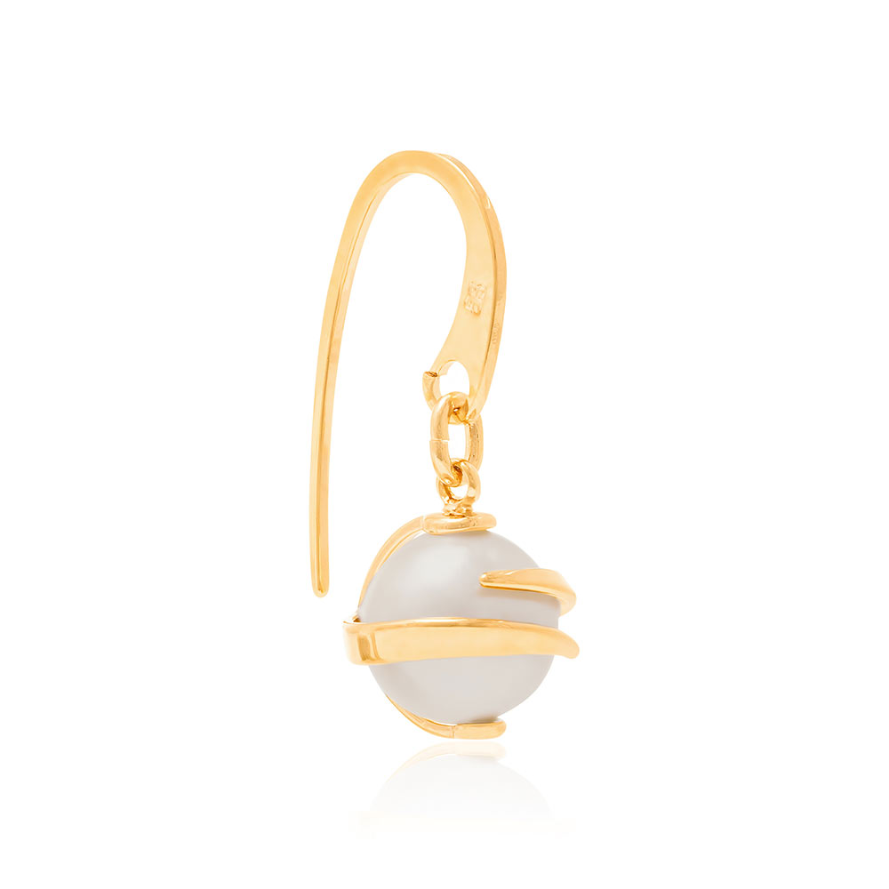 Brinco formado por pérola sintética com detalhe liso em volta. med 2,7 cm