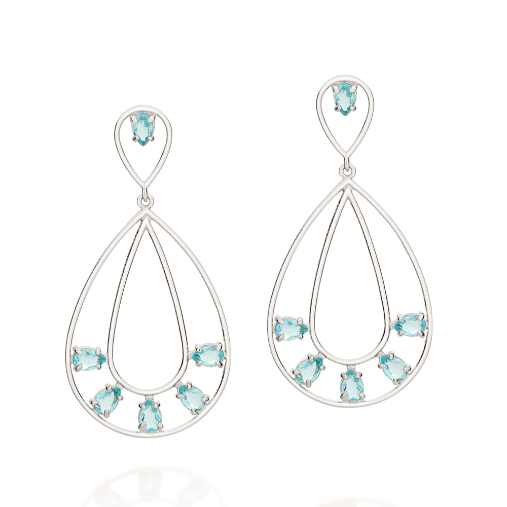 Brinco formado por gotas vazadas com 12 zircônias gota de 4x6mm (par) cravejadas.