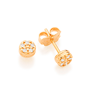 Brinco infantil formato redondo cravejado por 10 zircônias de 1,25 mm.