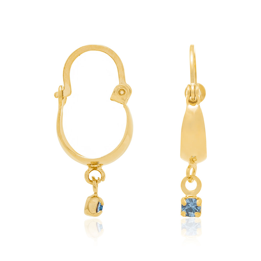 Brinco rommanel folheado a ouro 18k. brinco de argola infantil, com um cristal pendurado. Esta argola é ótima, tem fecho bem firme e seguro, apropriado para crianças. Opção de cores: azul claro e lilás