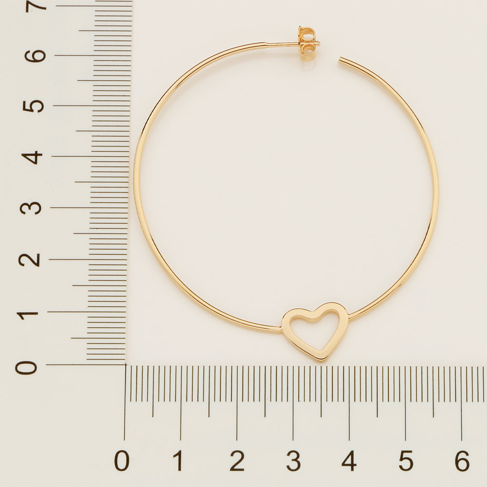 Brinco meia argola, composto por coração vazado de 12x10 mm ao centro.med 6,0 cm x 5x2 cm de diâmetro