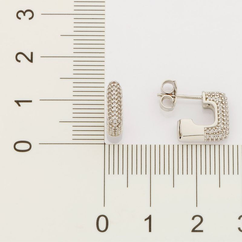 Brinco meia argola quadrada cravejada por 158 zircônias de 0,80 mm (par).