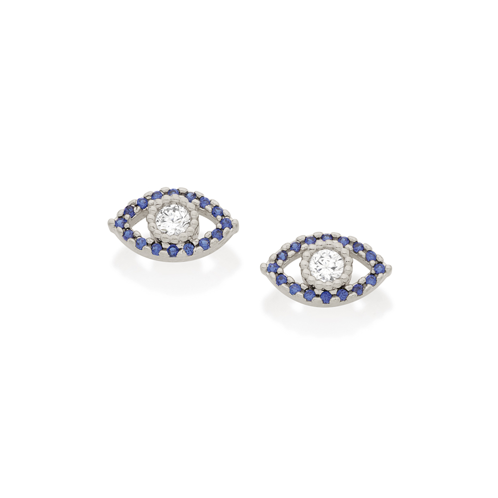 Brinco olho grego, composto por 34 zircônias de 1,0 mm e 2 zircônias de 3,0 mm ao centro. (joia licenciada coleção cápsula giovanna antonelli 1)