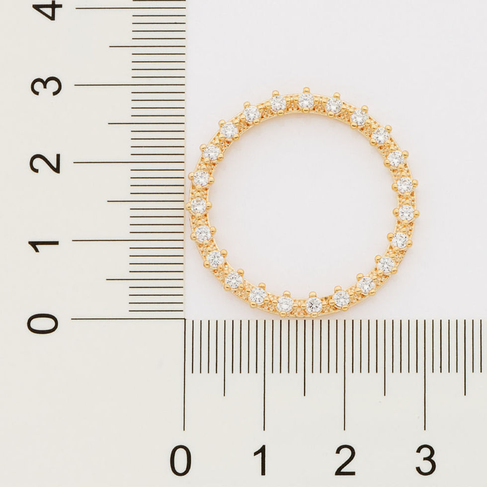 Brinco formato redondo vazado, cravejado por 46 zircônias de 2,0 mm.