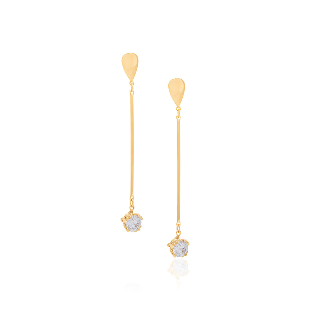 Brinco rommanel banhado a ouro 18 k palito com cristal pendurado 525200