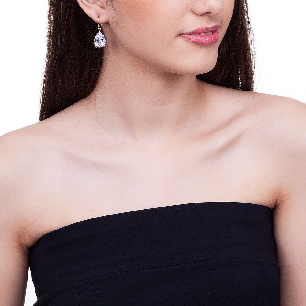 Brinco rommanel banhado a ouro 18 k zirconia gota facetada 523514