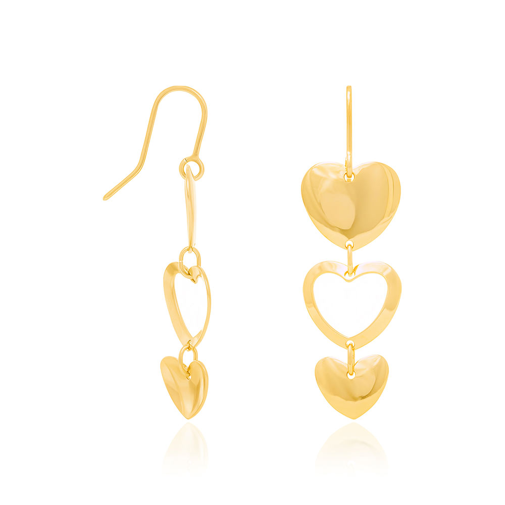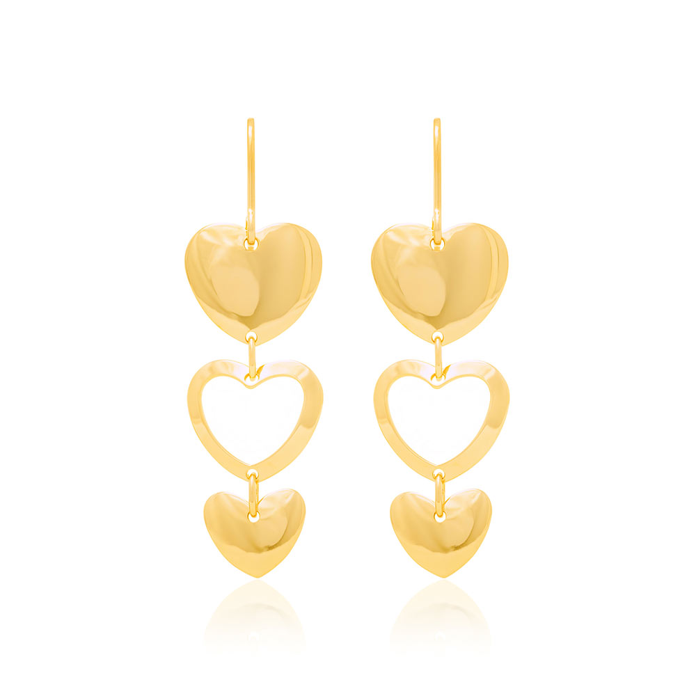 Brinco rommanel folheado a ouro 18k. brinco de gancho, formado por 3 corações vazados ,sendo o do centro vazado.