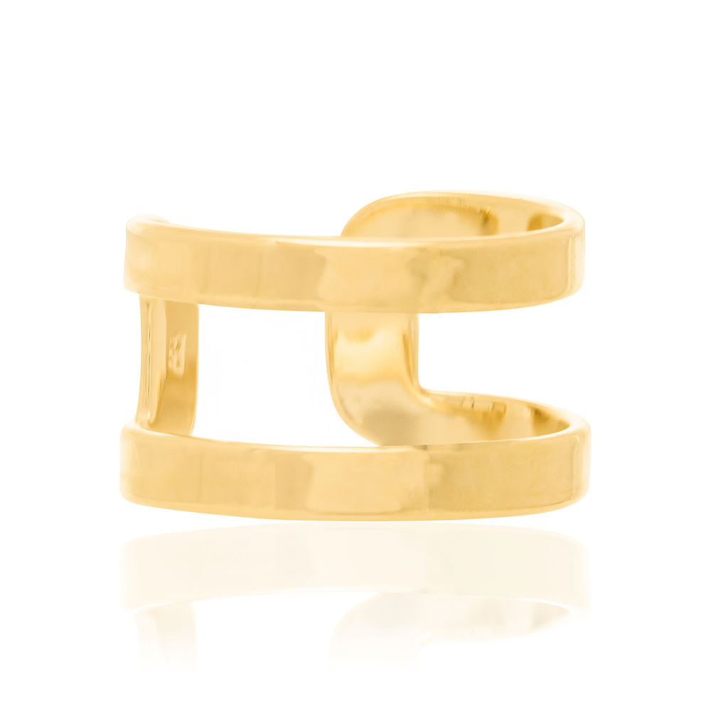 Brinco rommanel 526091 Banhado a ouro 18k modelo "ear cuff" formato meia argola lisa, com o centro vazado. Brinco de pressão, basta pressionar levemente na orelha para encaixar. Joia pertencente a coleção sunset rommanel.
