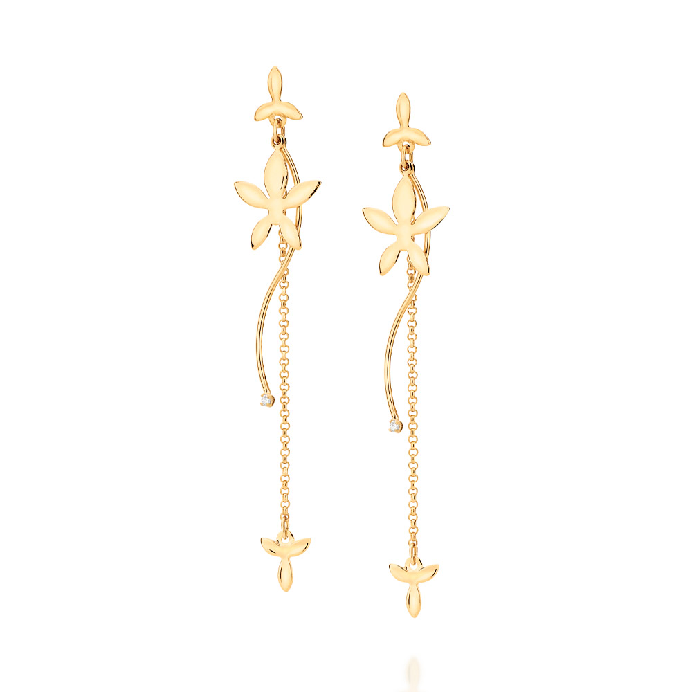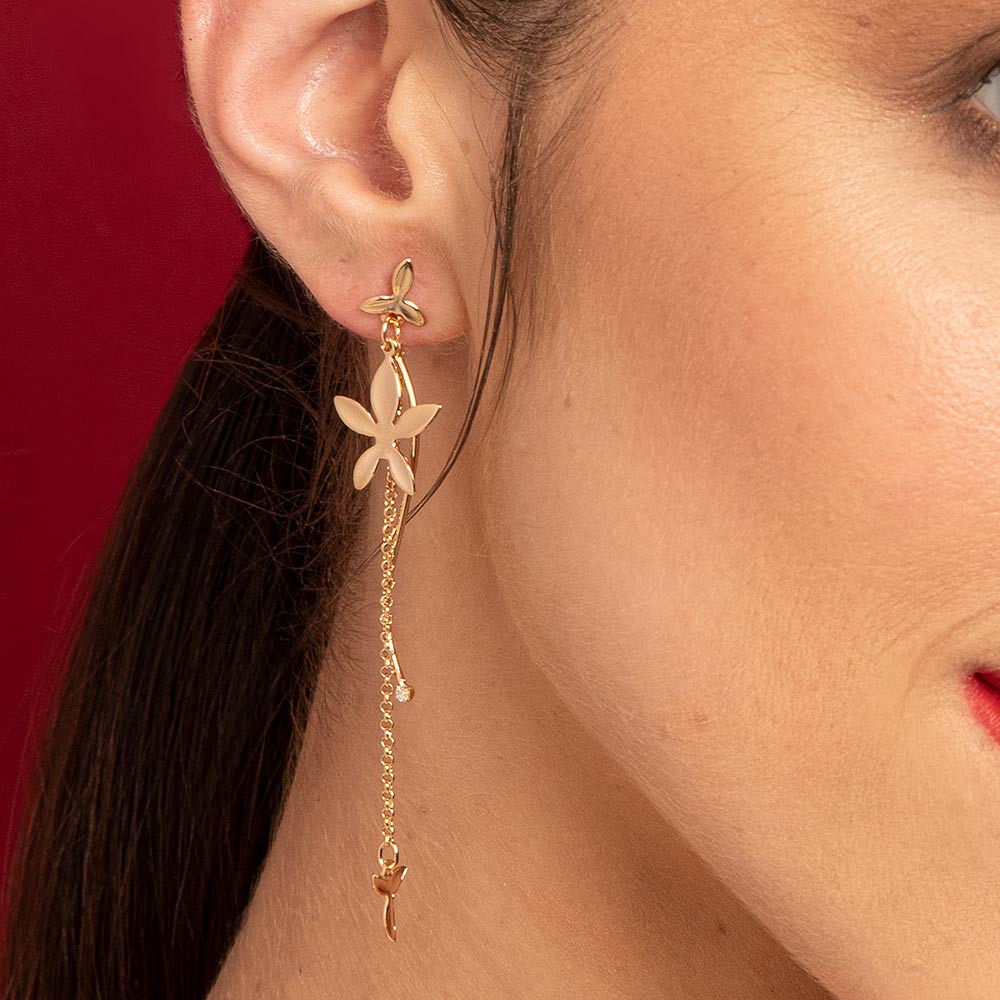 Maxi brinco formato flor, composto por fio elo português, com peça curvada cravejada por 2 zircônias de 1,75 mm nas pontas (par). Med 8,0 cm x 1,5 cm (joia licenciada coleção ana hickmann 23º edição)
