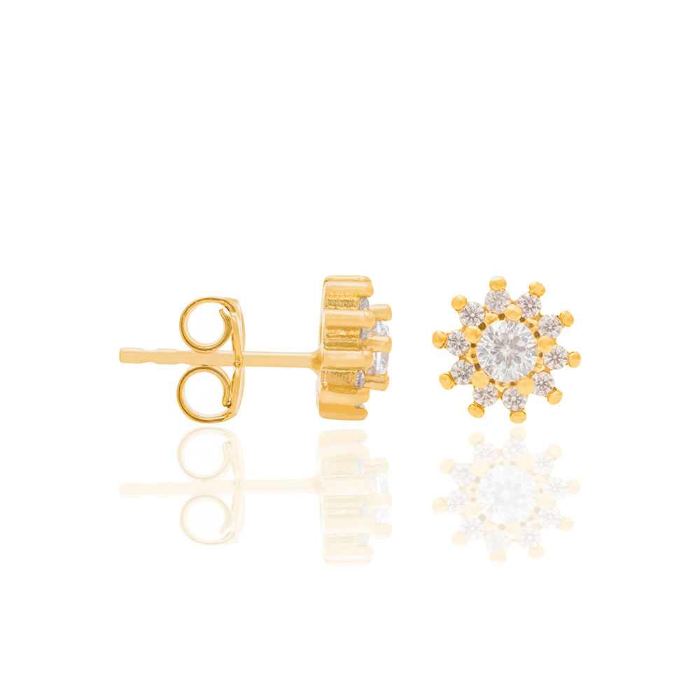 Brinco rommanel banhado a ouro flor pequena de zircônia 525721