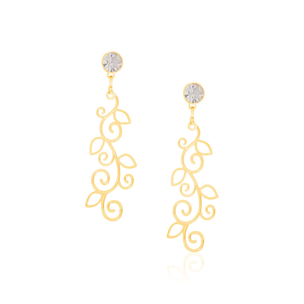 Brinco rommanel banhado a ouro galhos e folhas 524072