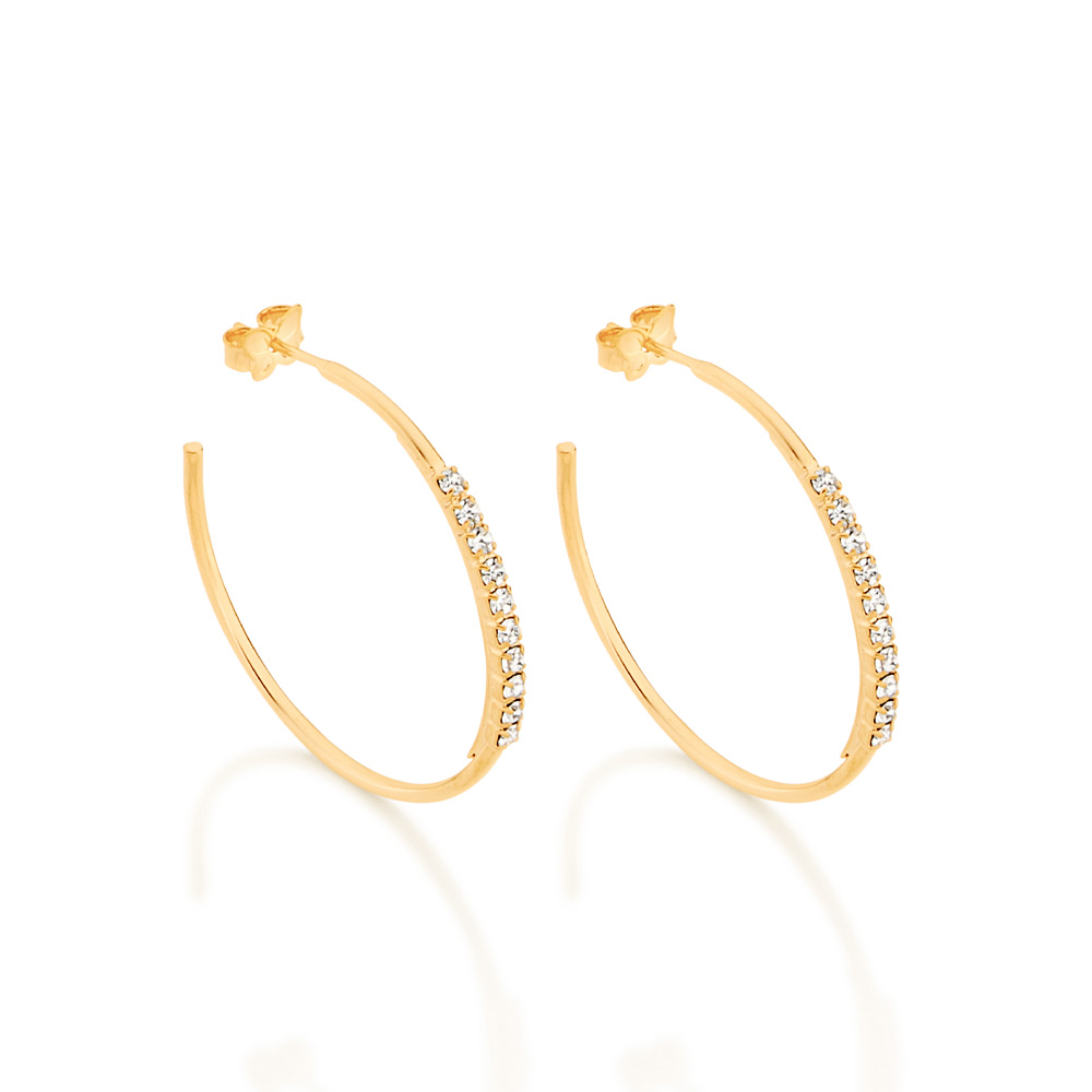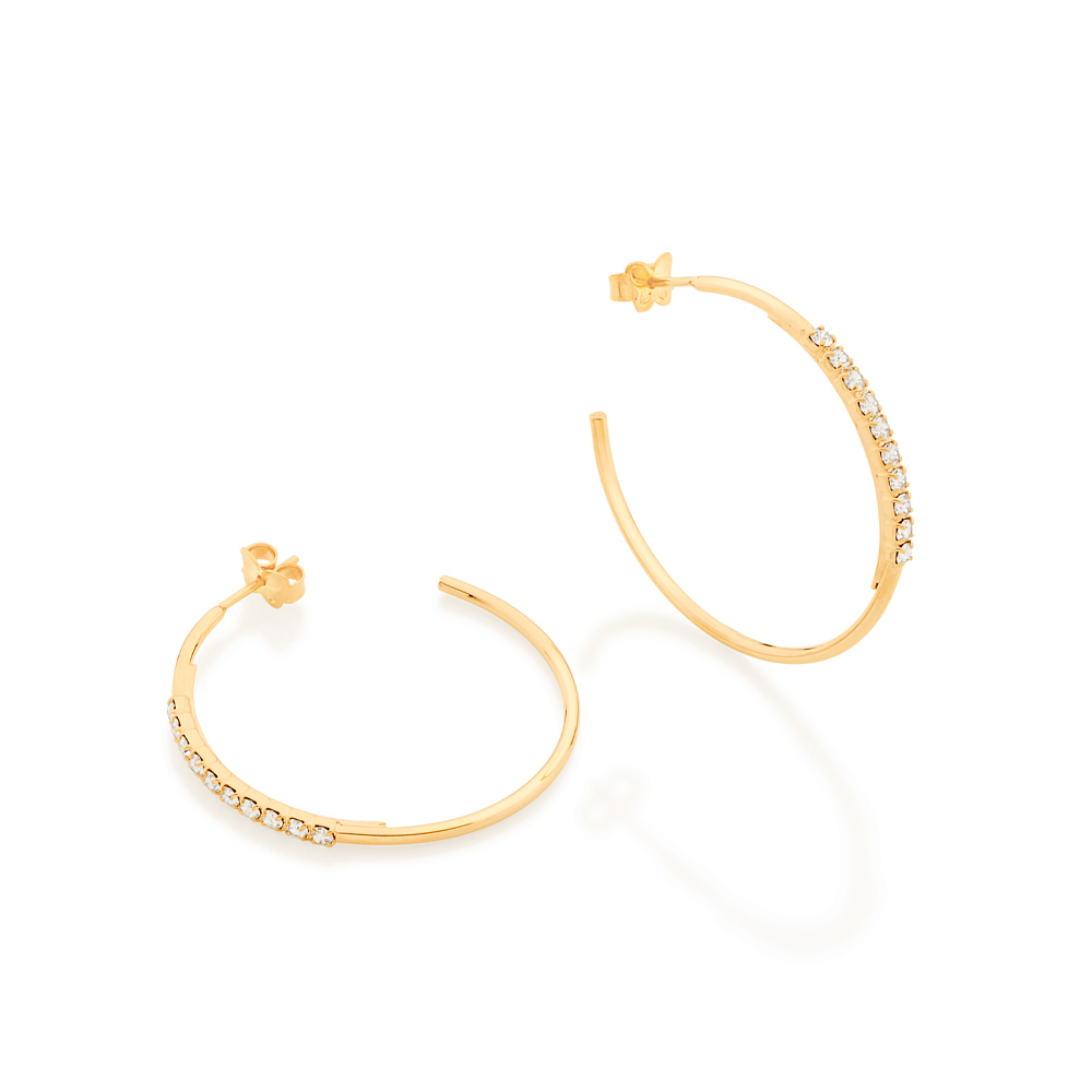 Brinco rommanel banhado a ouro meia argola com cristais 523310